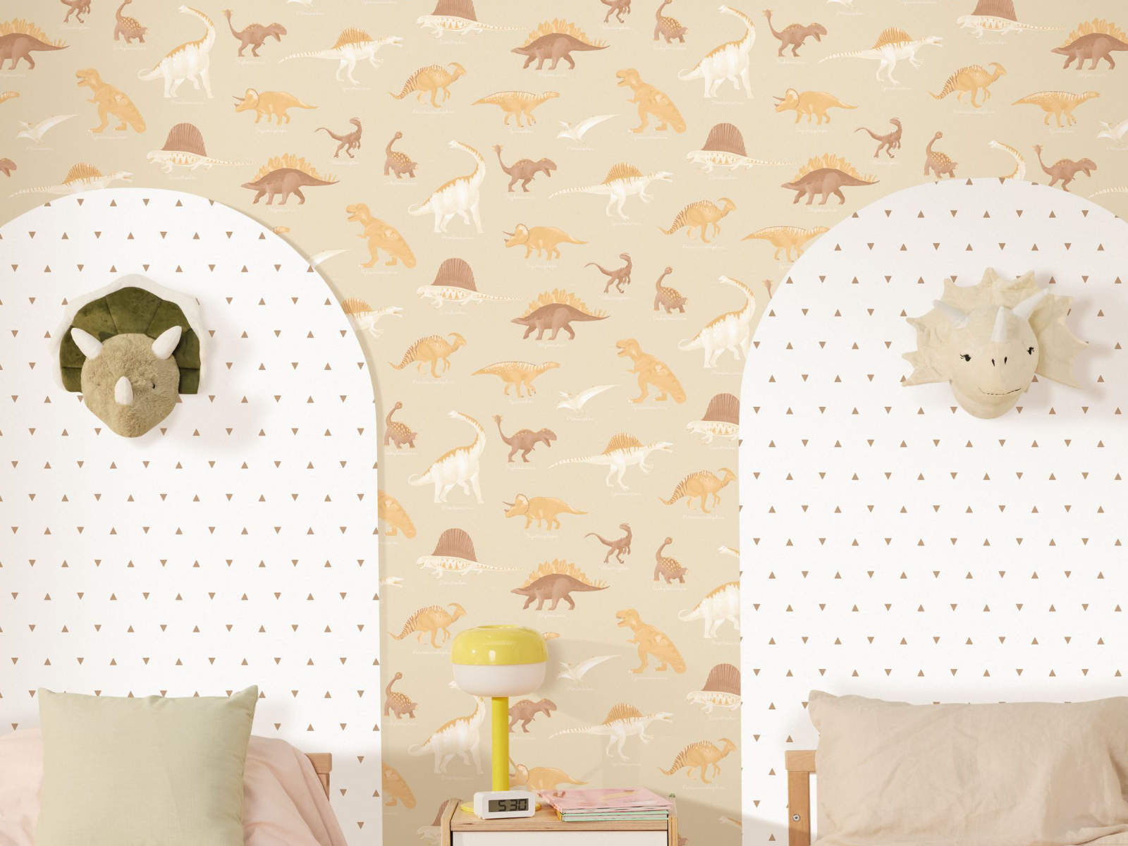 Laat je inspireren door de unieke combinatie van kleur en patroon die perfect past in zowel kinderkamers als speelse woonruimtes. De beige tint zorgt voor een warme en uitnodigende sfeer, terwijl de gedetailleerde dierenprint een avontuurlijke touch toevoegt. Of je nu een kleine ontdekkingsreiziger wilt verrassen of je eigen ruimte een creatieve twist wilt geven, dit behang biedt de perfecte balans tussen stijl en functionaliteit. Wacht niet langer en breng de magie van de Jurassic wereld in huis met het Caselio Les Mini Mondes Jurassique behang.