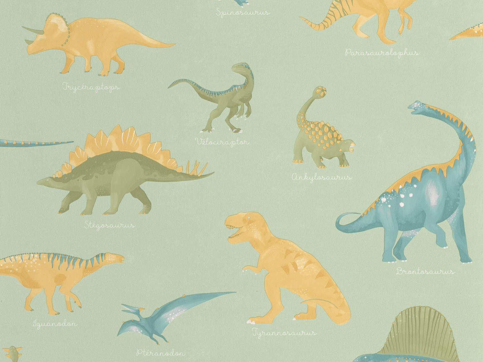 Ontdek de betoverende wereld van Caselio Les Mini Mondes Jurassique - 105707001, een groen dierenprint behang dat jouw muren tot leven brengt. Dit unieke muurbekleding op vliesmateriaal combineert de robuuste charme van de prehistorie met de moderne elegantie van vliesbehang. Met een breedte van 53 cm en een rol van 10,05 m, biedt dit behang de perfecte balans tussen stijl en functionaliteit. De verspringende aanzet en een patroonhoogte van 53 cm zorgen voor een dynamische en speelse uitstraling, waardoor elke muur een eigen verhaal vertelt.