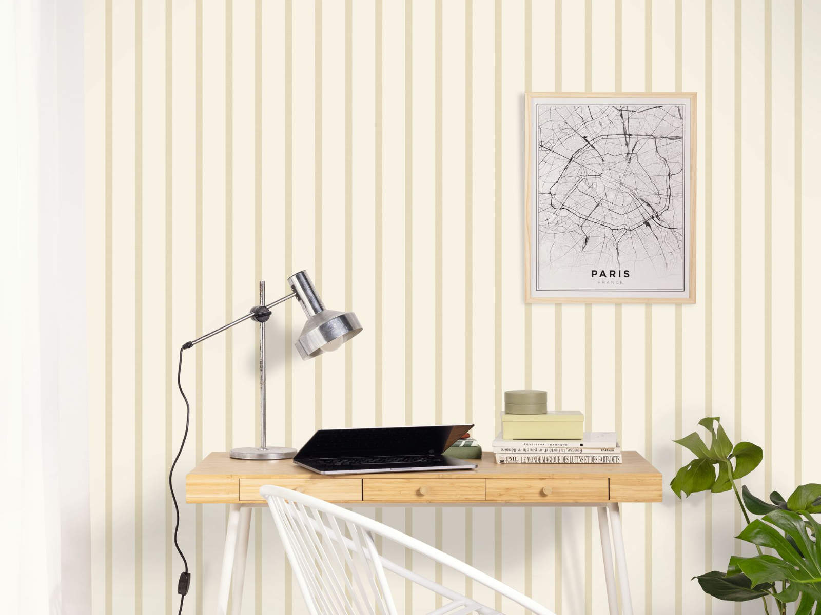 Transformeer je interieur met de elegante charme van de Caselio Twist Katy - 106491010. Dit beige streepbehang is de perfecte keuze voor wie op zoek is naar een subtiele maar stijlvolle upgrade van hun woonruimte. De neutrale tinten van het vinylbehang op vlies zorgen voor een warme en uitnodigende sfeer, terwijl het streeppatroon een vleugje verfijning toevoegt zonder te overheersen. Dankzij de vrije aanzet kun je het behang eenvoudig aanbrengen zonder je zorgen te maken over patroonherhaling, wat het een ideale optie maakt voor zowel beginners als ervaren doe-het-zelvers.