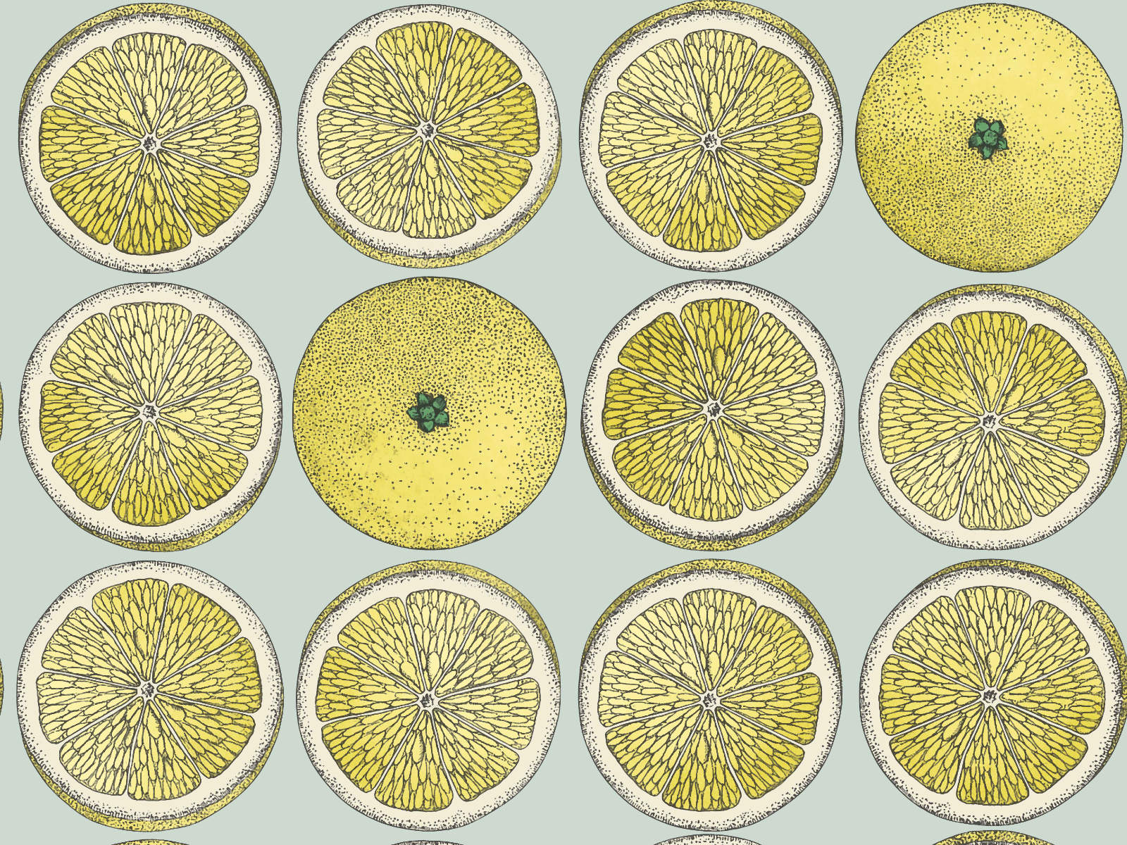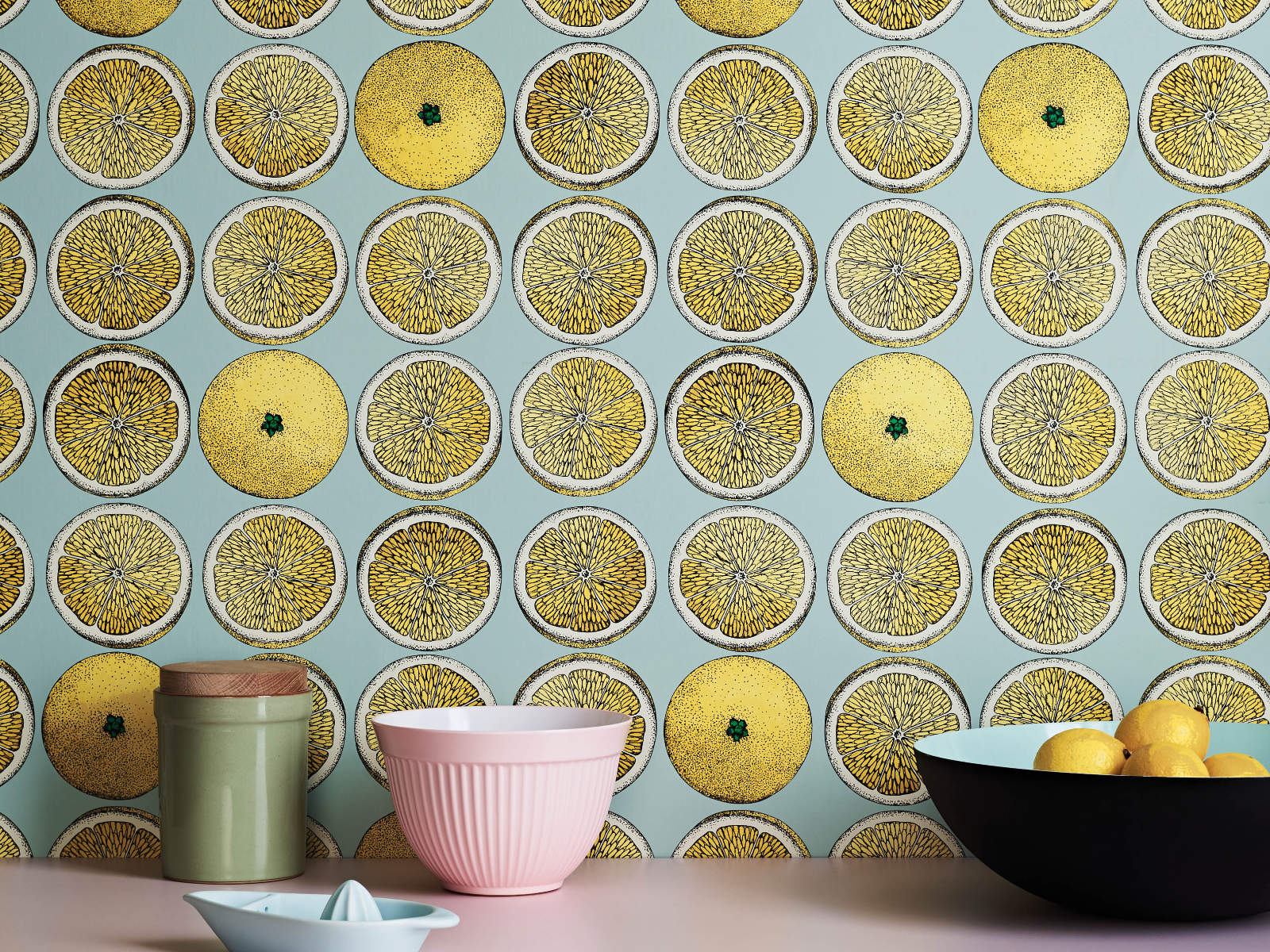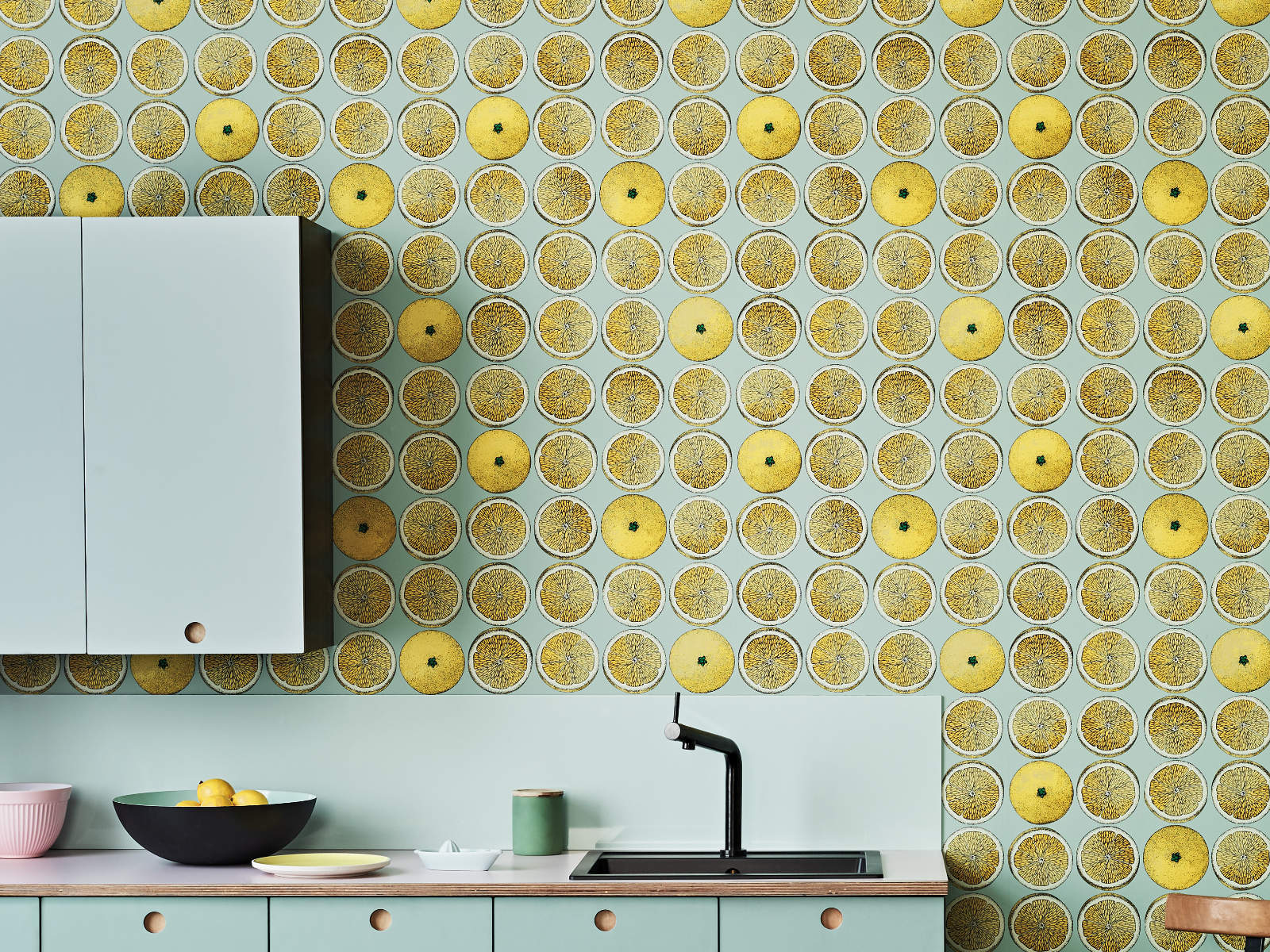 De Fornasetti Senza Tempo Arance - 114/24048 van Cole & Son behang is een gewaagde herhaling van mediterrane citrusvruchten. Een veelvoorkomend thema in het Fornasetti-archief, dat oorspronkelijk verscheen op het dienblad 'Fette d'arancia' in de jaren 1950 en door Barnaba Fornasetti in de jaren '90 werd hergebruikt als een grafische stoffenprint.