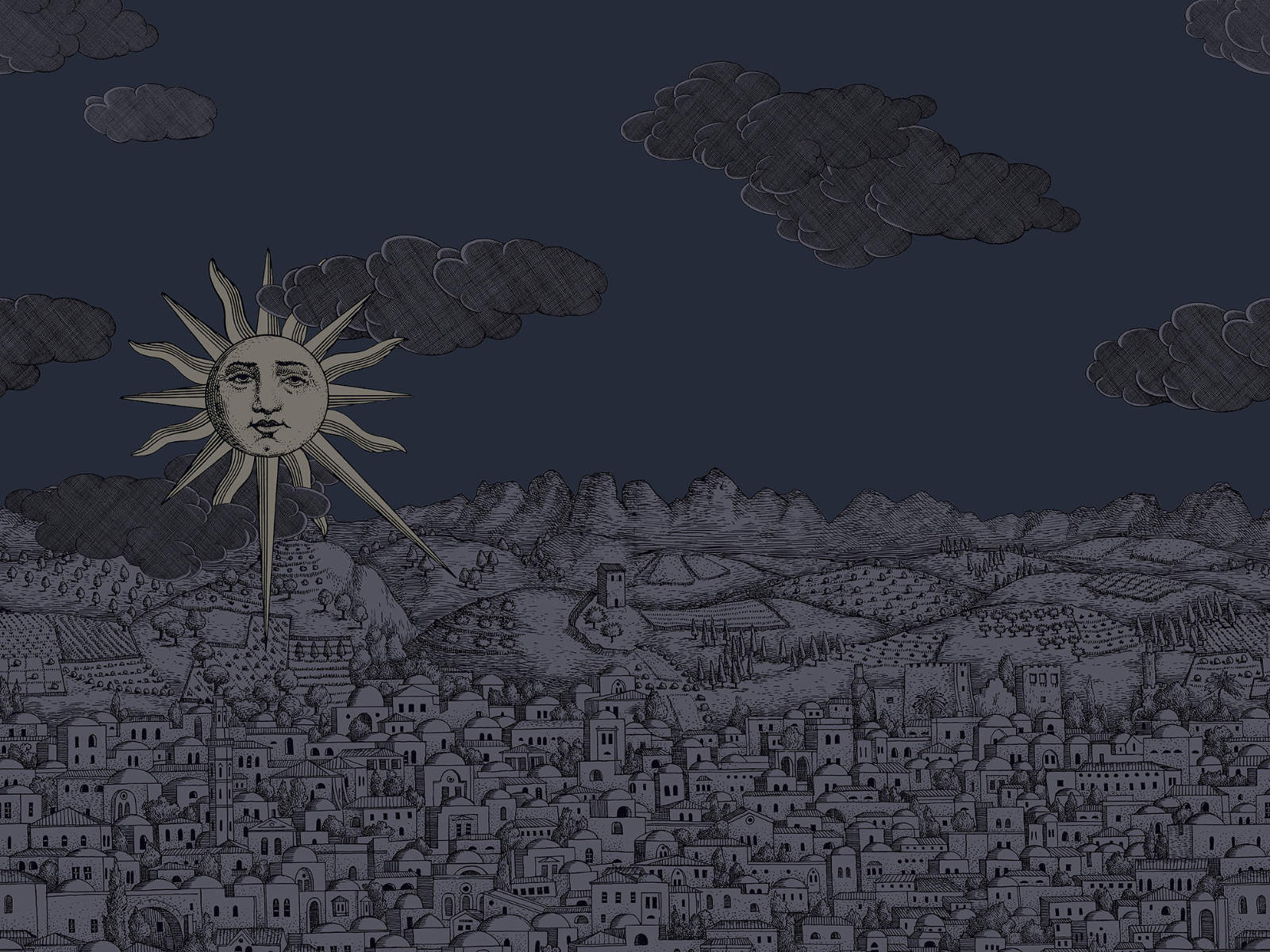 De Fornasetti Senza Tempo II Vista Mediterranea - 123/3013 van Cole & Son is een betoverend behang dat je meeneemt op een reis naar een magisch Jeruzalem. Dit unieke ontwerp combineert moeiteloos meerdere perspectieven en architectonische stijlen in een eindeloze dans van schoonheid. Elke blik op je muur wordt een ontdekkingsreis naar verre oorden, waar de grenzen van fantasie en realiteit vervagen.