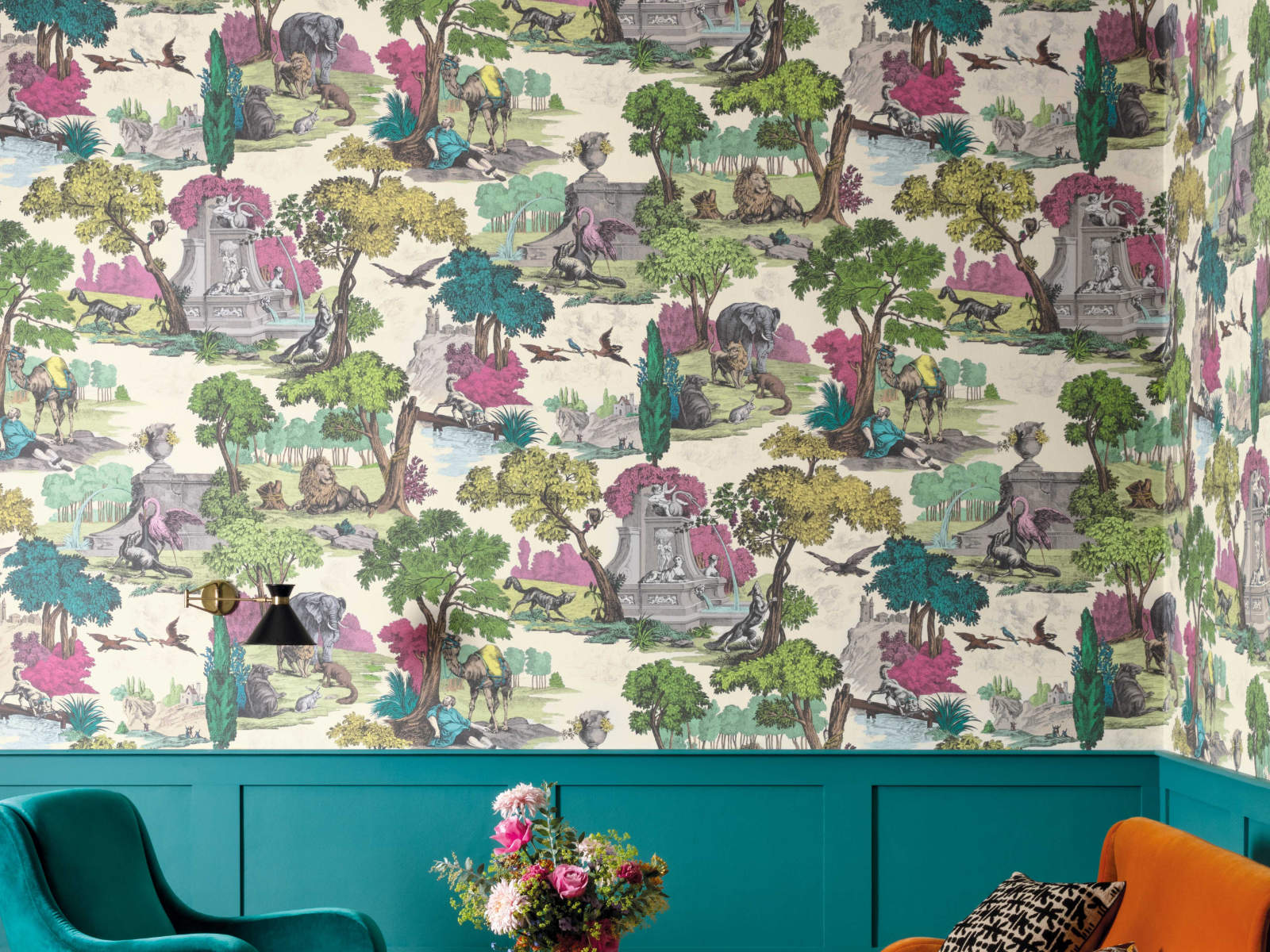 The Contemporary Collection Versailles Grand - 99/16064 van Cole & Son behang weerspiegelt het glorieuze schilderachtige Frankrijk van de 18e eeuw. Dit dessin wordt geproduceerd in frisse, multicolor kleuren en bestaat uit een A en B rollenset die gezamenlijk het gehele dessin vormen.