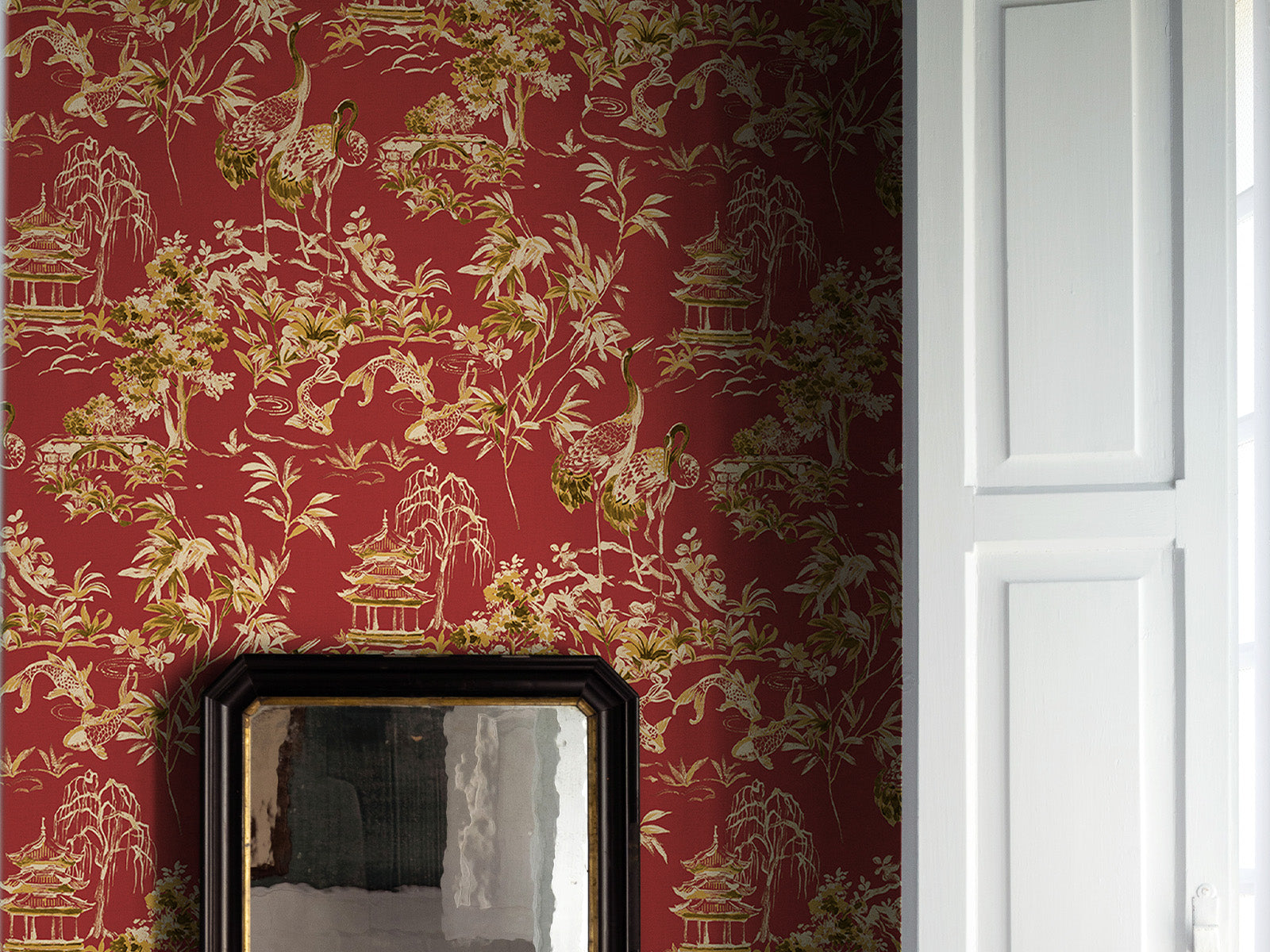 Geef je muren een verhaal met het Ming Pagoda behang uit de Forbidden City collectie van Coordonné. Dit verfijnde dierenprint behang combineert gracieuze vogels met botanische elementen in een harmonieus patroon dat zowel levendig als elegant aanvoelt. De rijke details en sierlijke vormen brengen een vleugje exotische charme in elke ruimte, geïnspireerd op klassieke Aziatische motieven.