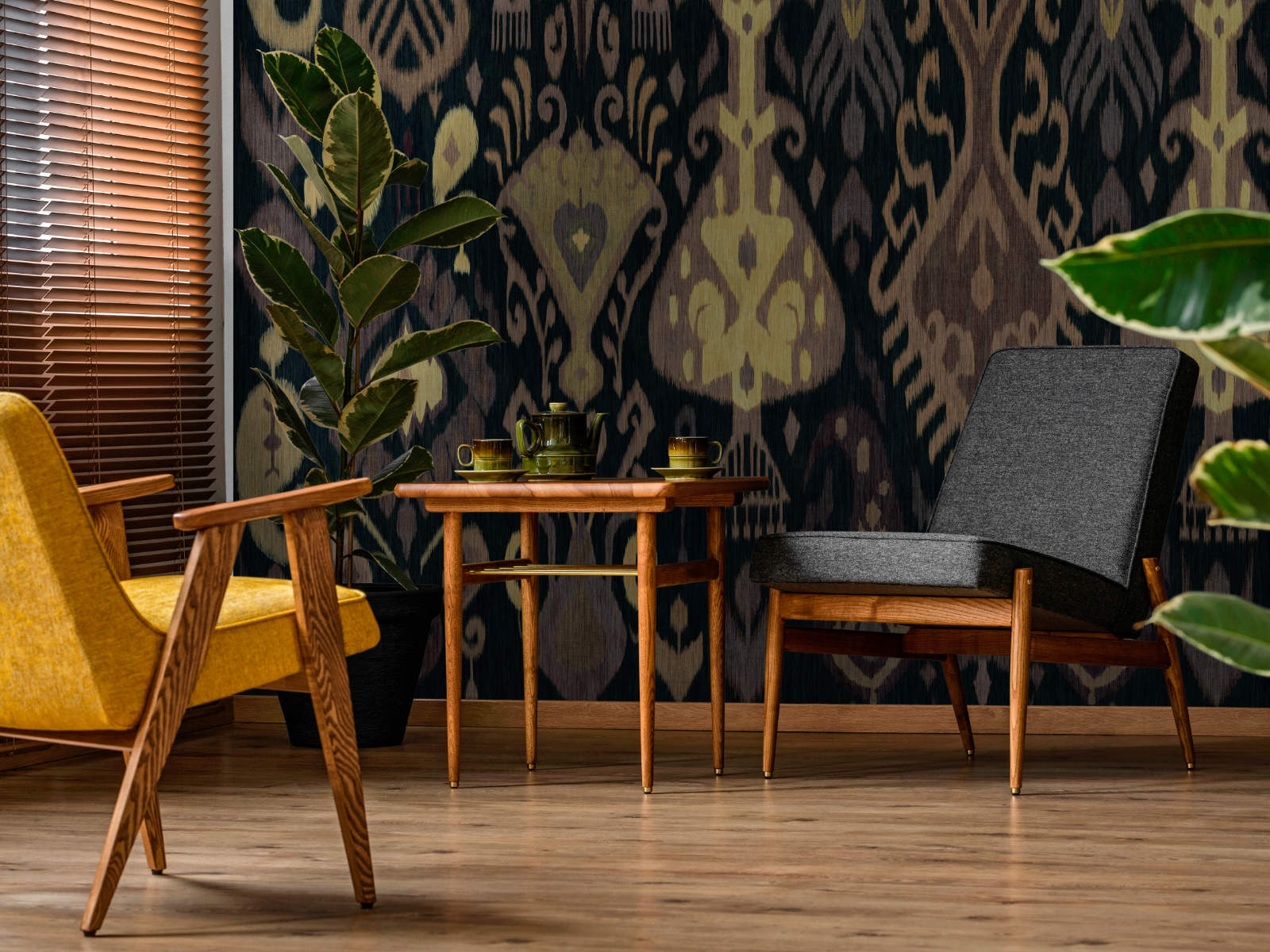 Breng de vrije geest van wereldse ambacht in huis met het Ikart Boho behang van Coordonné. Dit expressieve ontwerp is een botanische en ornamentale mix vol bohemian flair, geïnspireerd op handgemaakte culturele decoraties. De rijke ikat-structuren en organische vormen zorgen voor een levendig patroon dat warmte en karakter uitstraalt.