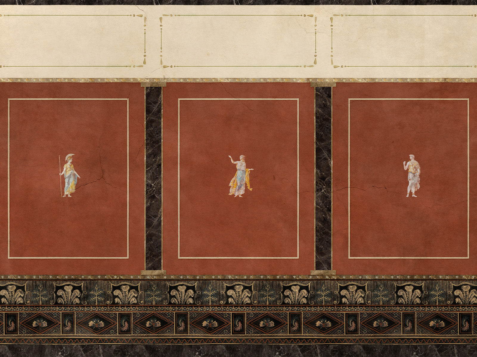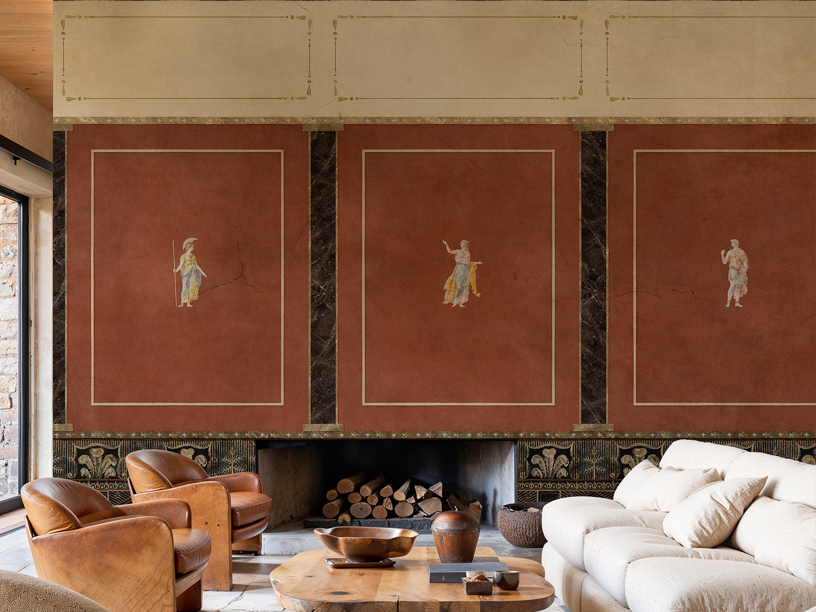 Breng de grandeur van klassieke architectuur naar je interieur met het Arianna behang uit de Pompei collectie van Coordonné. Dit indrukwekkende decorbehang combineert levendige fresco-elementen met strakke geometrische vormen, zoals zuilen, frontons en sierlijke lijsten. De rechte aanzet zorgt voor een moeiteloze plaatsing, waardoor het rijke patroon perfect tot zijn recht komt op elke muur.