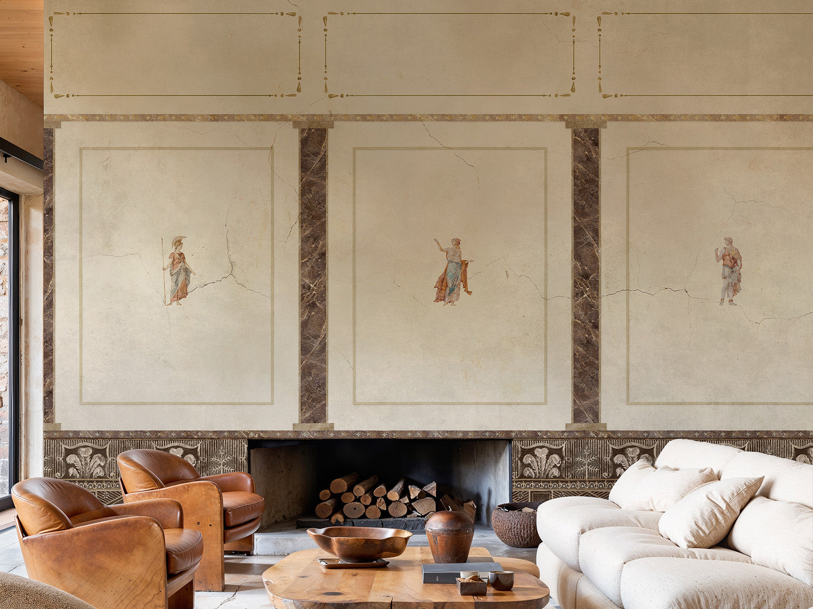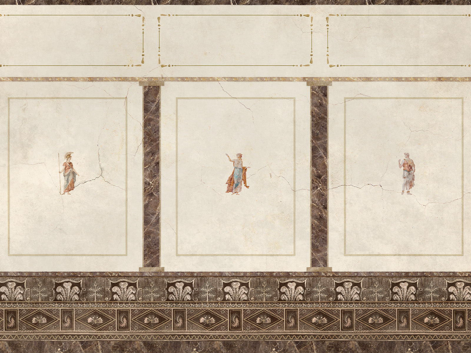 Breng de grandeur van klassieke architectuur naar je interieur met het Arianna behang uit de Pompei collectie van Coordonné. Dit indrukwekkende decorbehang combineert levendige fresco-elementen met strakke geometrische vormen, zoals zuilen, frontons en sierlijke lijsten. De rechte aanzet zorgt voor een moeiteloze plaatsing, waardoor het rijke patroon perfect tot zijn recht komt op elke muur.