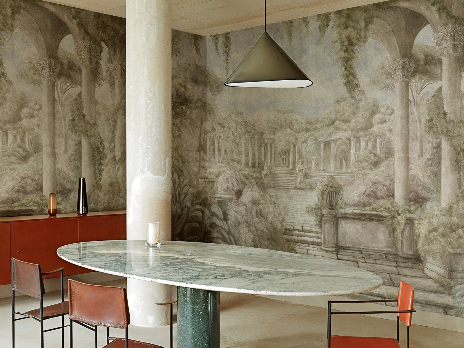 Gemaakt van stevig vlies of luxe vinyl en voorzien van een rechte aanzet, is dit behang zowel praktisch als esthetisch een topper. Columnarum brengt een gevoel van geschiedenis, natuur en sereniteit samen in jouw interieur. Ideaal voor wie een artistieke, rustgevende sfeer wil creëren met karakter.