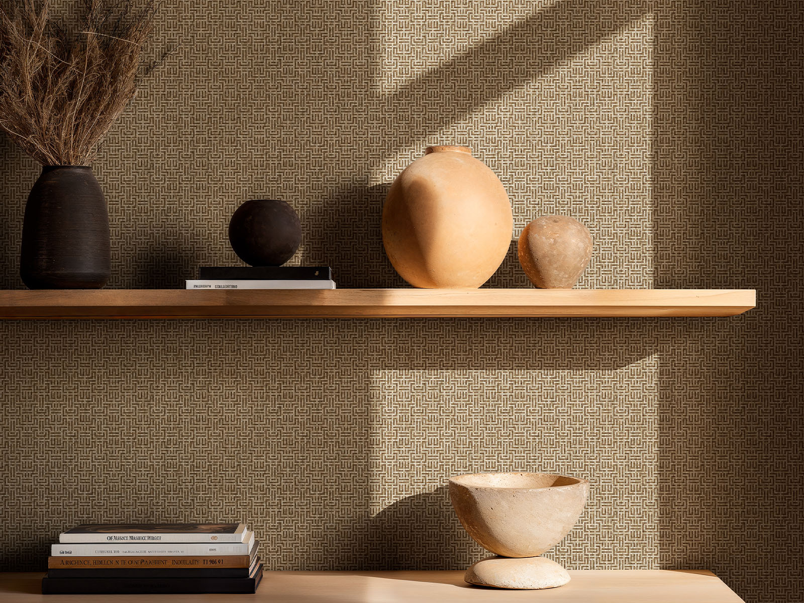 Breng de verfijnde charme van Romeinse villa’s in je interieur met het Geometricum behang uit de Pompei collectie van Coordonné. Dit geometrische ontwerp is geïnspireerd op gevlochten matstructuren die destijds warmte en textuur toevoegden aan koele stenen vloeren. Het patroon van 32,5 cm herhaalt zich subtiel en zorgt voor een stijlvol, ritmisch effect op de muur.