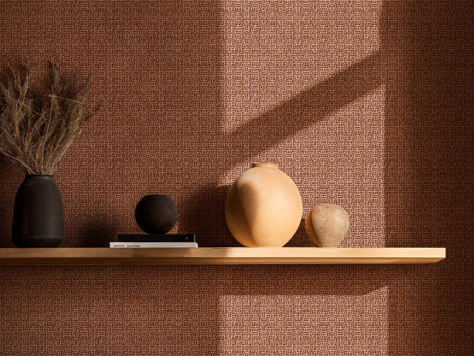 Breng de verfijnde charme van Romeinse villa’s in je interieur met het Geometricum behang uit de Pompei collectie van Coordonné. Dit geometrische ontwerp is geïnspireerd op gevlochten matstructuren die destijds warmte en textuur toevoegden aan koele stenen vloeren. Het patroon van 32,5 cm herhaalt zich subtiel en zorgt voor een stijlvol, ritmisch effect op de muur.