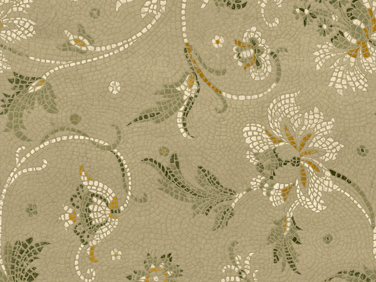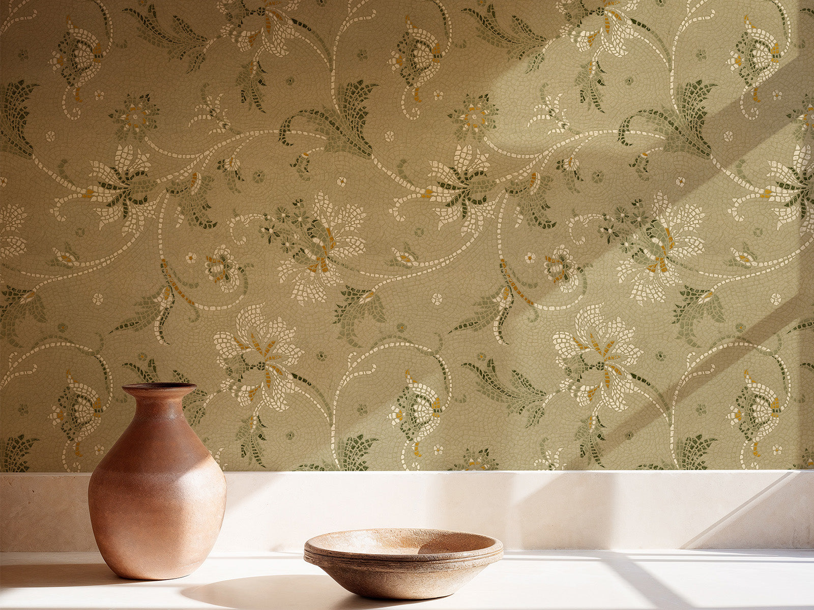 Geïnspireerd op de rijkversierde vloeren van Romeinse paleizen brengt het Mosaicum behang uit de Pompei collectie van Coordonné een ode aan de kunst van marmer en glasmozaïek. Dit botanische bloemen patroon straalt finesse en ambacht uit, alsof elke tesseras met de hand gelegd is. Het resultaat? Een luxueuze, levendige wandbekleding met een klassieke ziel en een moderne uitstraling.