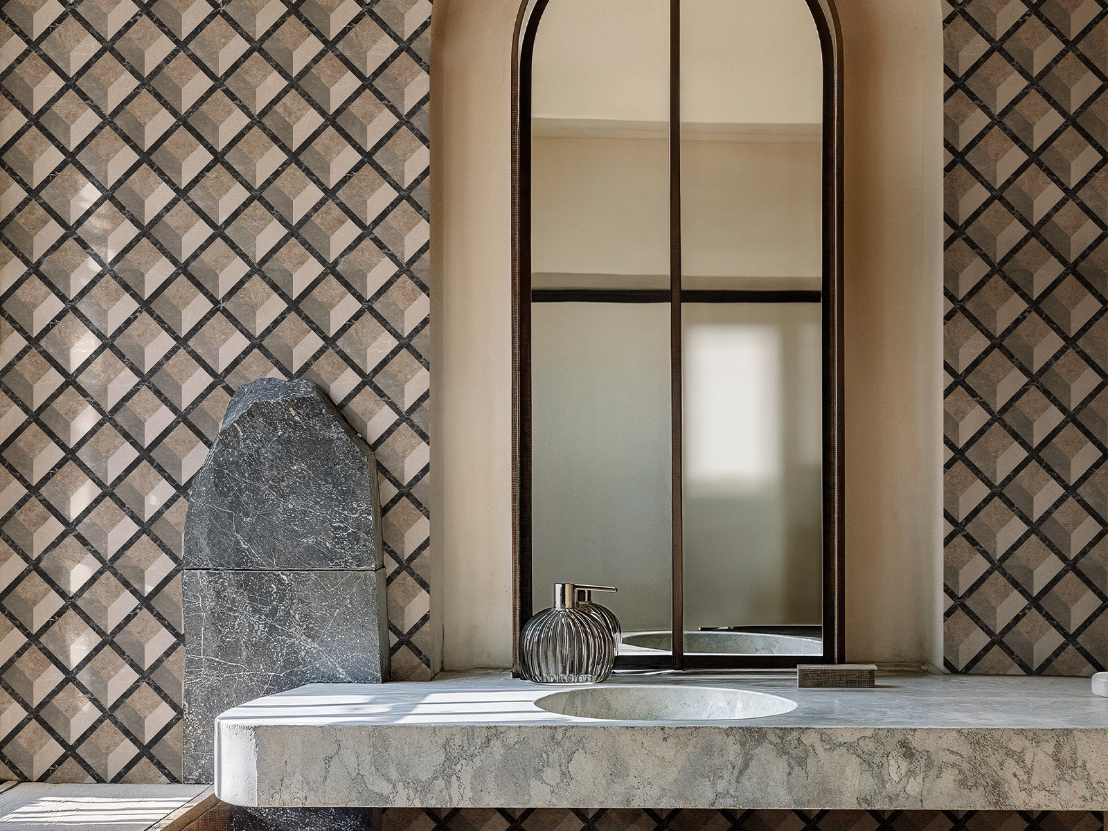 Geïnspireerd op de rijk versierde vloeren van het Romeinse Rijk brengt het Pavimentum behang uit de Pompei collectie van Coordonné een prachtig geometrisch patroon dat doet denken aan mozaïeken van marmerstukken uit alle hoeken van het rijk. De ruitvormige puzzelstructuur geeft je muur een luxe, grafisch karakter met een subtiele knipoog naar de oudheid.