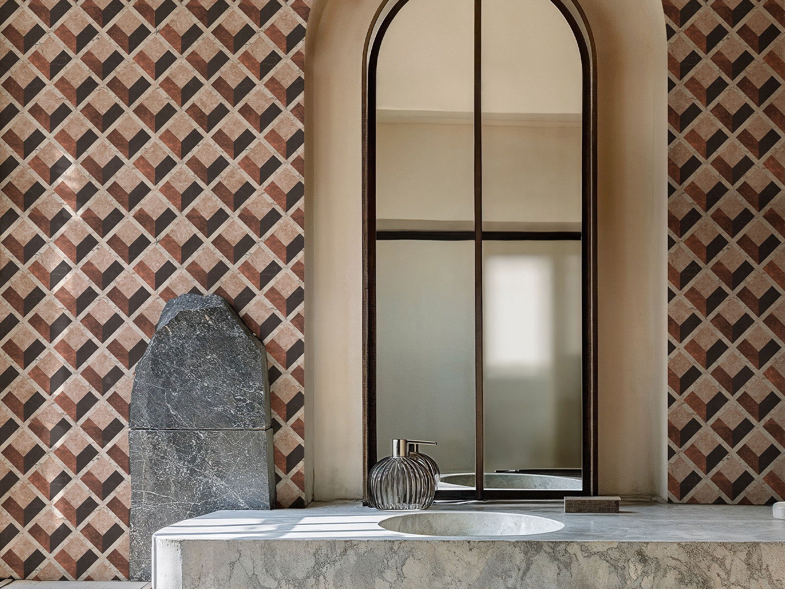 Geïnspireerd op de rijk versierde vloeren van het Romeinse Rijk brengt het Pavimentum behang uit de Pompei collectie van Coordonné een prachtig geometrisch patroon dat doet denken aan mozaïeken van marmerstukken uit alle hoeken van het rijk. De ruitvormige puzzelstructuur geeft je muur een luxe, grafisch karakter met een subtiele knipoog naar de oudheid.