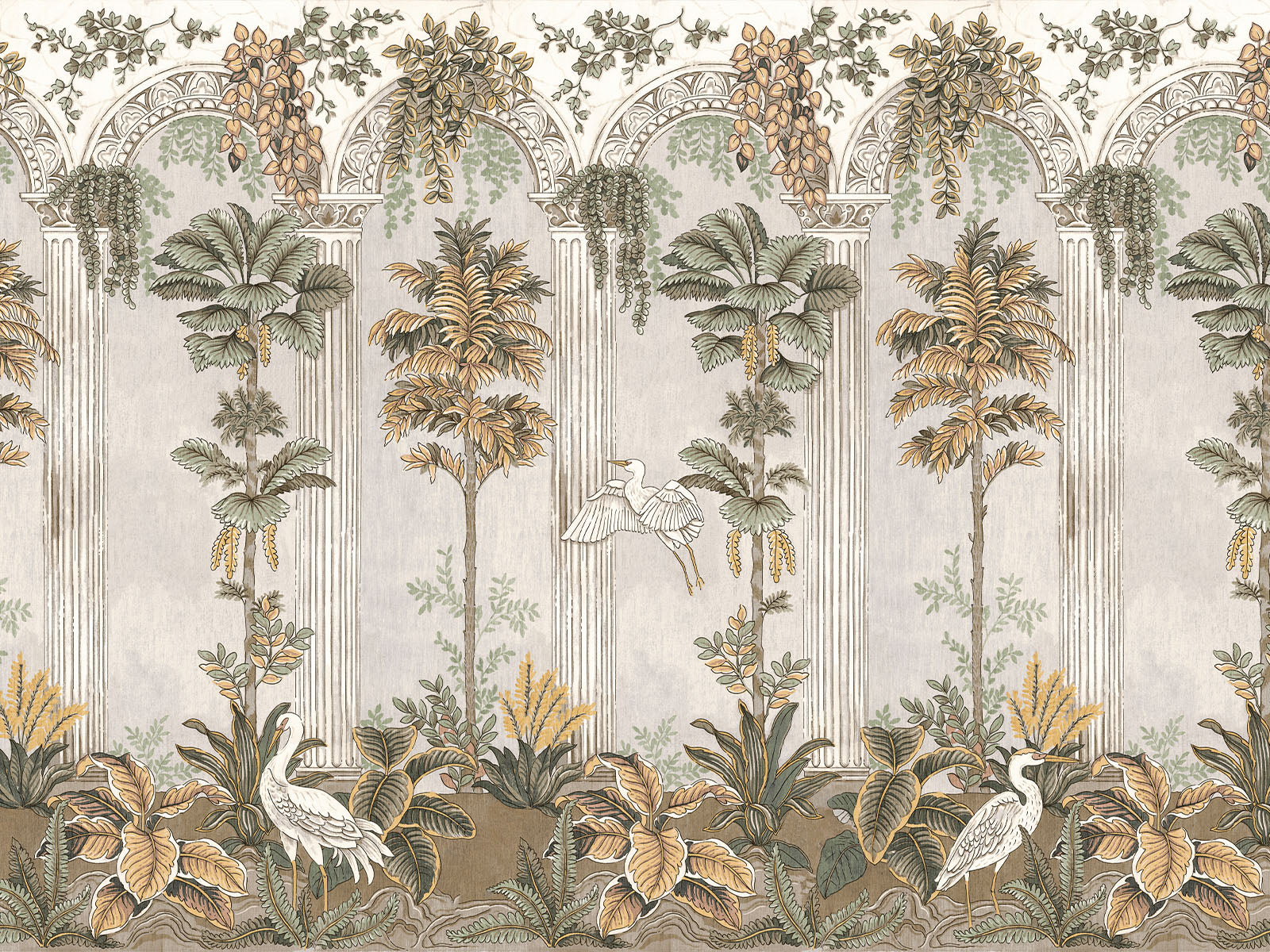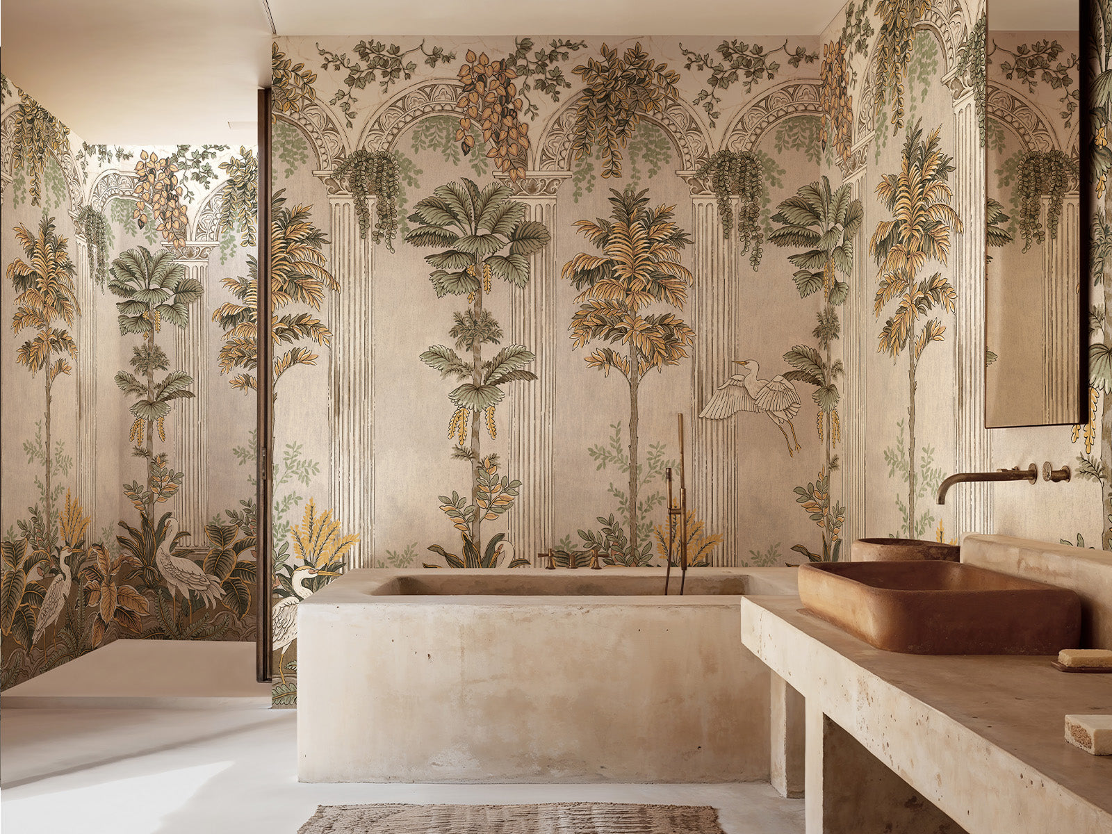 Het behang is beschikbaar in vlies of vinyl en heeft een rechte aanzet voor een naadloze afwerking. Thermae is leverbaar in vier stijlvolle kleurvarianten en vormt een opvallend statement in elke ruimte waar geschiedenis, kunst en natuur samenkomen. Ideaal voor wie van karaktervolle muren met een verhaal houdt.