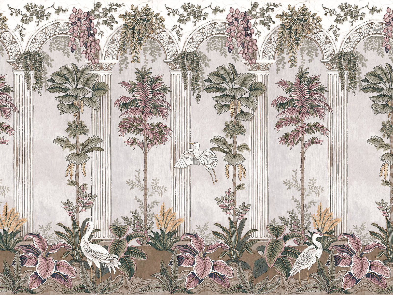 Stap in een wereld van luxe en mystiek met Thermae, een betoverend behang uit de Pompei collectie van Coordonné. Geïnspireerd op de sfeer van Romeinse warmwaterbronnen, combineert dit landschapspatroon weelderige fresco’s, mythologische taferelen en sierlijke zuilen tot een visueel spektakel. Botanische elementen, vogels en dierlijke details brengen het geheel tot leven en zorgen voor een rijke, klassieke uitstraling.