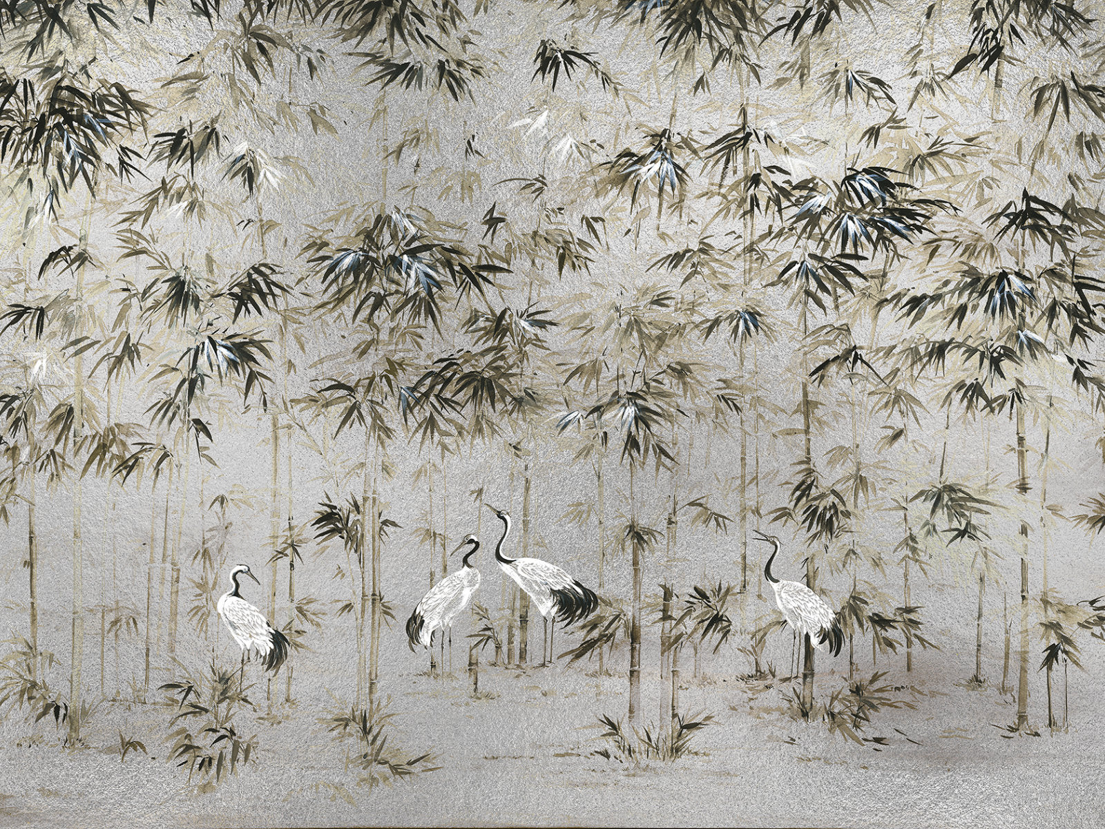 Haal pure elegantie in huis met Garzas uit de Random Metallics collectie van Coordonné. Deze luxe panorama muurbekleding combineert een verfijnde dierenprint met botanische elementen, uitgevoerd in een schitterende metallic afwerking. Verkrijgbaar in zowel goud als zilver, brengt dit ontwerp een stijlvolle glans en diepte aan elke ruimte.