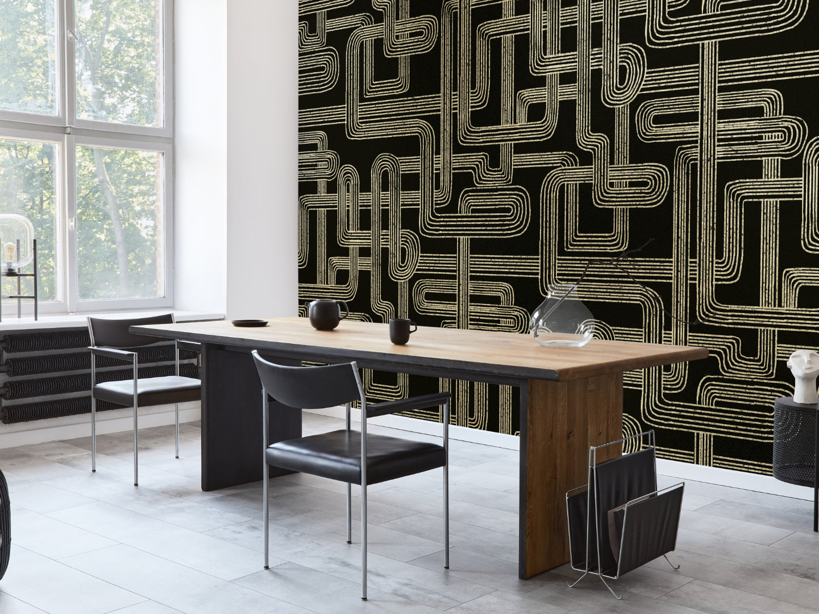 Laat je interieur schitteren in art deco-stijl met Gatsby uit de Random Metallics collectie van Coordonné. Dit elegante panorama combineert een abstract geometrisch patroon met een luxueuze metallic afwerking, geïnspireerd op de glamour van de jaren 20. Kies uit vier verfijnde kleuren zwart, zilver, rosé en goud en geef je ruimte direct een stijlvolle upgrade.