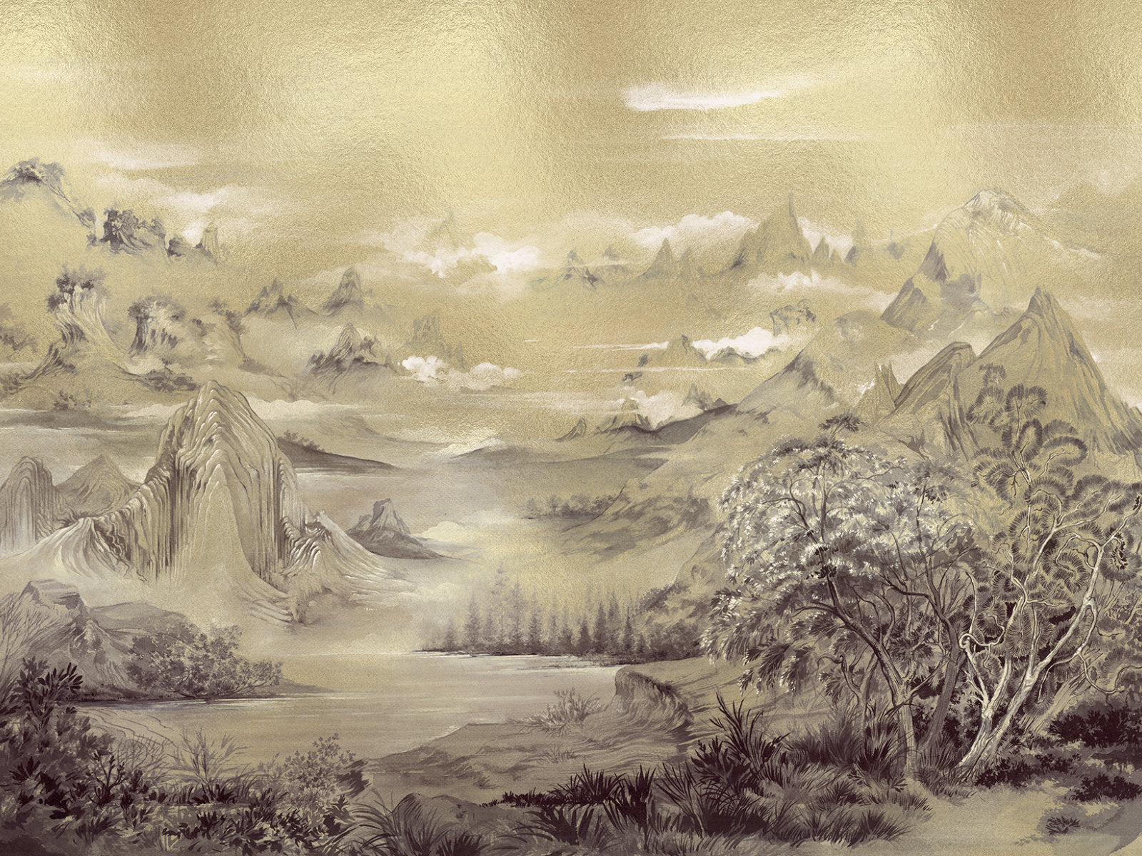 Breng rust en mystiek in je interieur met het Kami behang uit de Random Metallics collectie van Coordonné. Dit ontwerp toont een mistig berglandschap dat een gevoel van diepte en sereniteit oproept. Verkrijgbaar in goud en zilver, zorgt de metallic afwerking voor een subtiele glans die het landschap een bijna dromerige dimensie geeft.