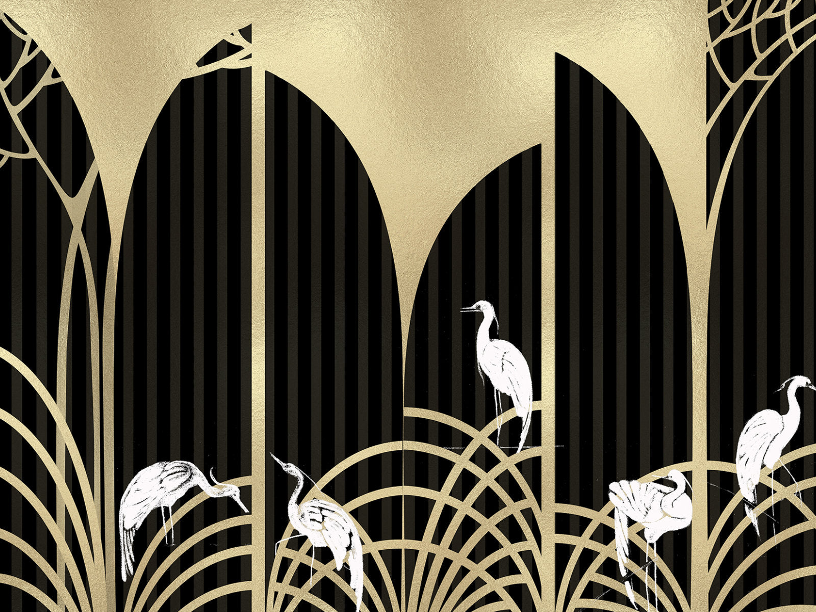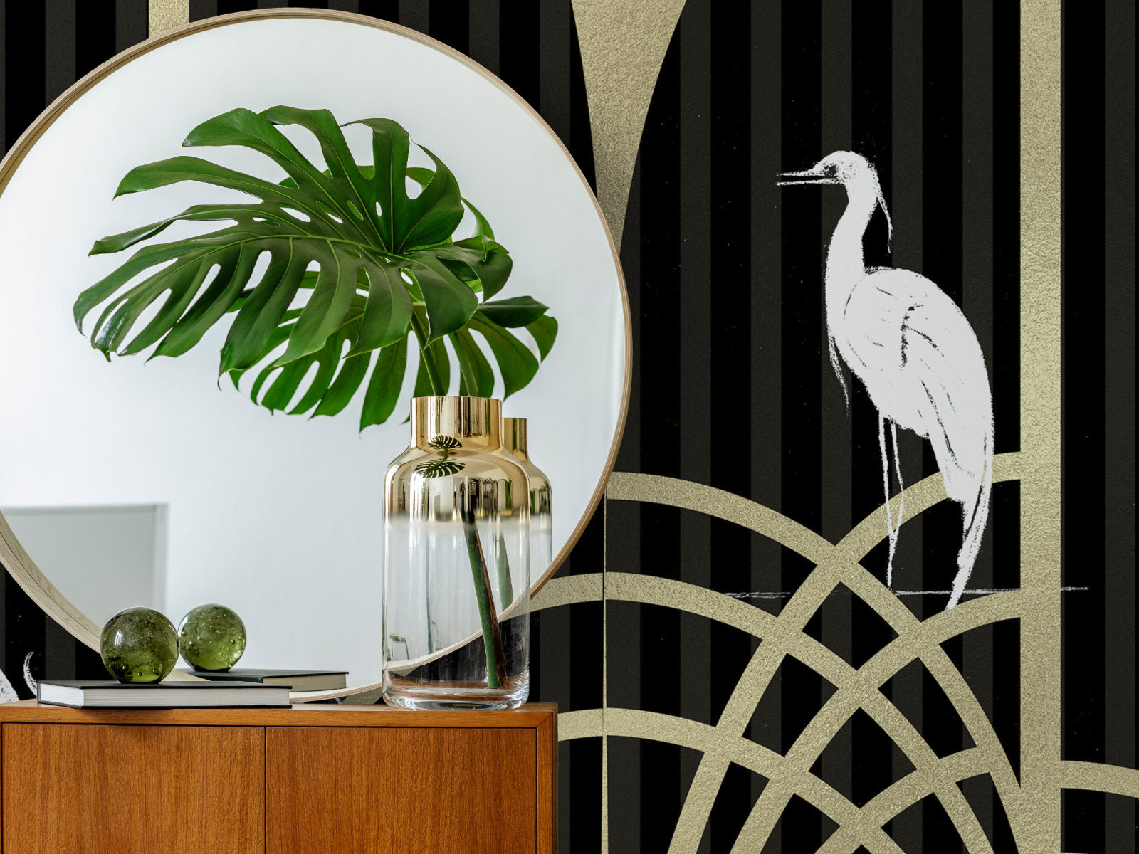 Een harmonie van natuur en structuur komt samen in het Tassel behang uit de Random Metallics collectie van Coordonné. In dit verfijnde ontwerp zie je sierlijke kraanvogels bewegen binnen een geometrische omgeving, wat zorgt voor een verrassende combinatie van elegantie en ritme. Verkrijgbaar in zilver met roze en goud met zwart, waarbij de metallic glans het ontwerp een luxueuze en levendige uitstraling geeft.