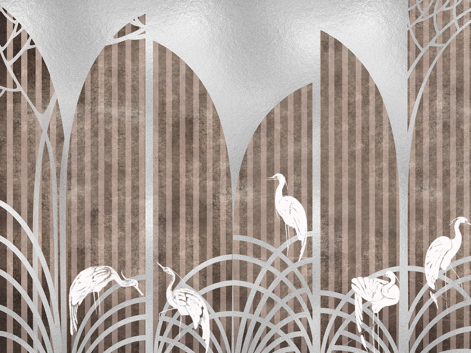 Een harmonie van natuur en structuur komt samen in het Tassel behang uit de Random Metallics collectie van Coordonné. In dit verfijnde ontwerp zie je sierlijke kraanvogels bewegen binnen een geometrische omgeving, wat zorgt voor een verrassende combinatie van elegantie en ritme. Verkrijgbaar in zilver met roze en goud met zwart, waarbij de metallic glans het ontwerp een luxueuze en levendige uitstraling geeft.