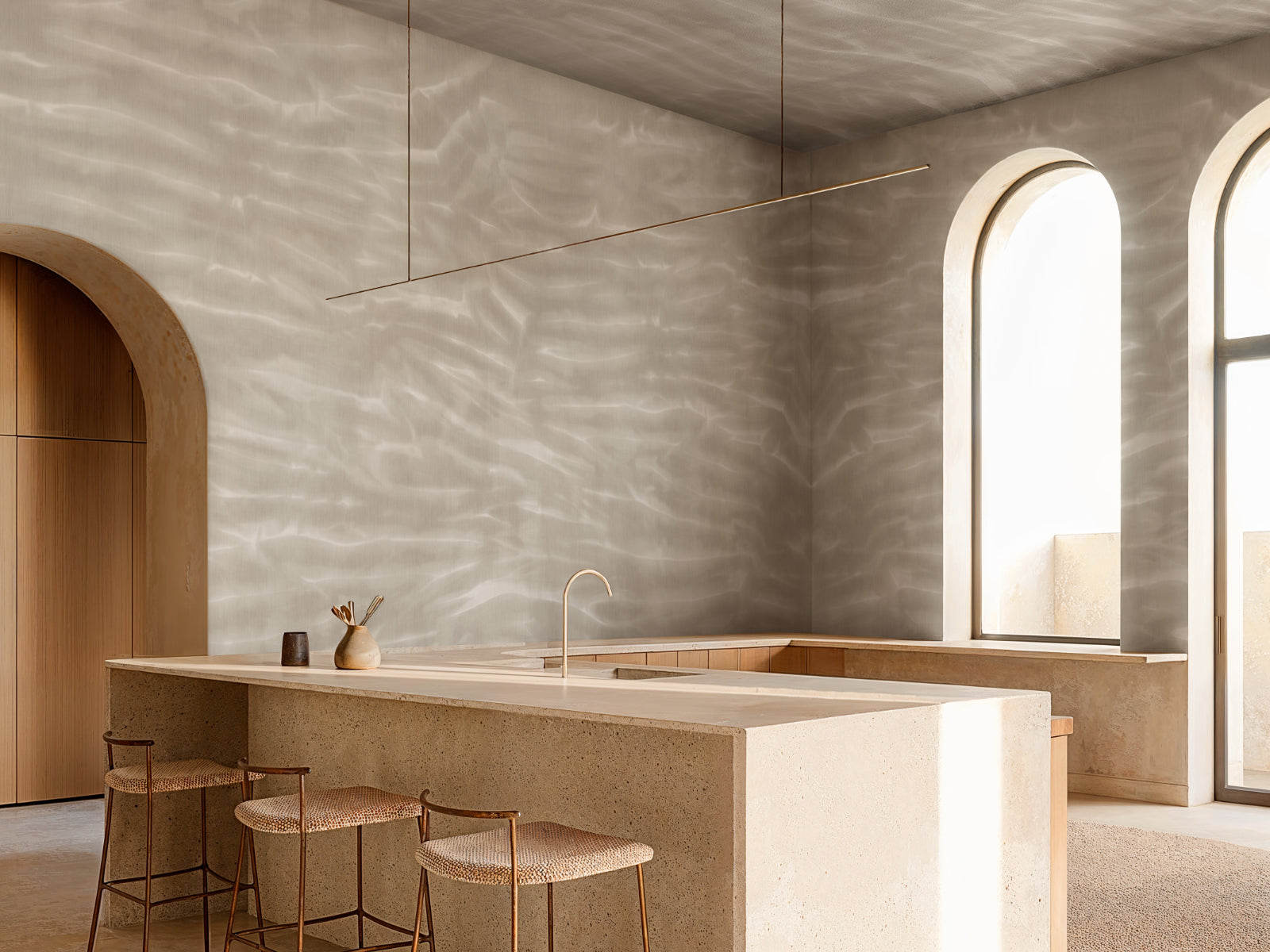 Arashi is verkrijgbaar in vier natuurlijke kleurvarianten en gemaakt van hoogwaardig vinyl of vlies materiaal. Het brede panorama formaat versterkt het ruimtelijke effect, waardoor je kamer aanvoelt als een frisse bries aan zee. Laat je omringen door rust en reflectie met dit unieke design uit de Shibori collectie.
