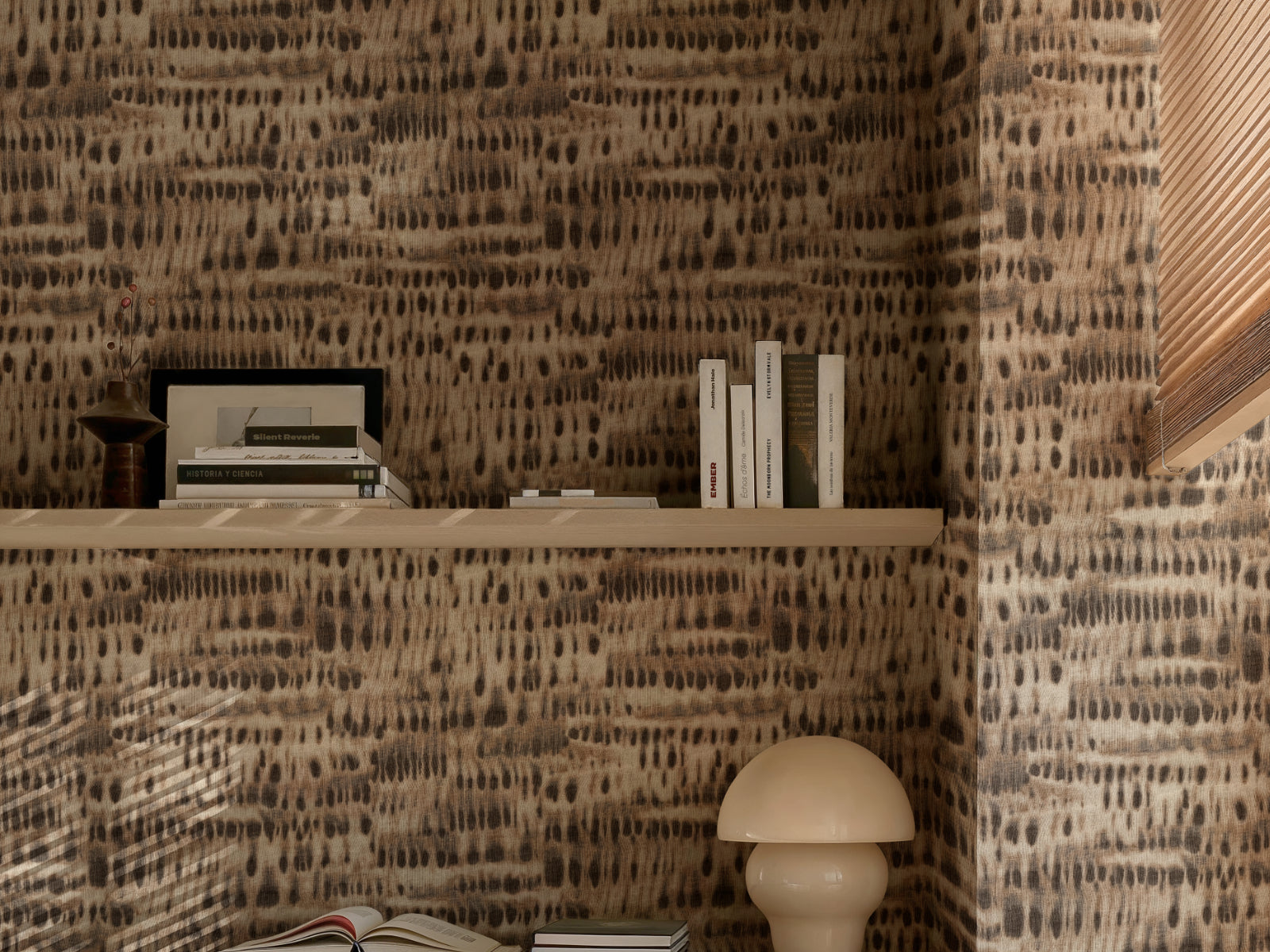 Durf op te vallen met Shibori Kawari, een opvallend abstract behang uit de Shibori collectie van Coordonné. Geïnspireerd op de oerkracht van het dierenrijk, doet dit patroon denken aan een moderne interpretatie van een luipaardprint. De textuur springt eruit en geeft je muur een krachtig en levendig karakter, Perfect voor wie durft te combineren en een natuurlijk statement wil maken.