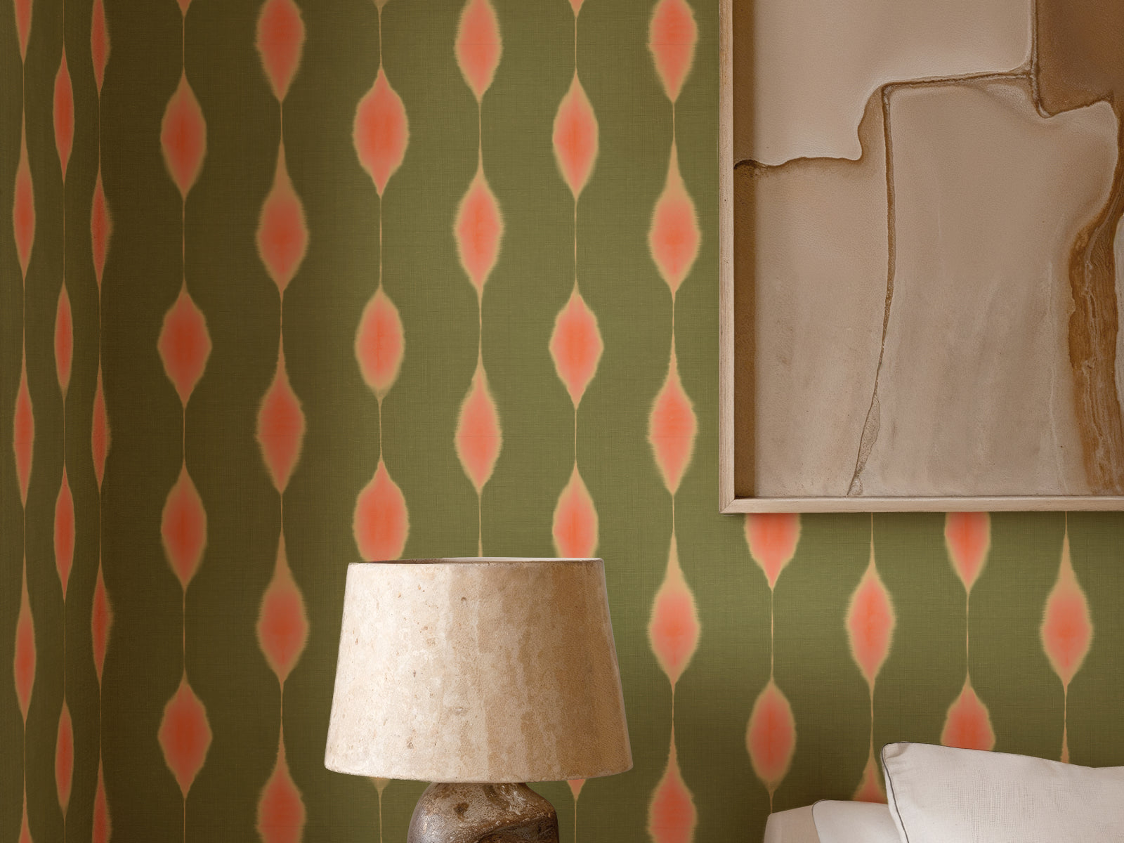 Geïnspireerd op de vloeiende beweging van zijde in transformatie, brengt Shibori Kumo van Coordonné een zacht en verfijnd ikat patroon naar je interieur. De combinatie van subtiele strepen en een handgeweven uitstraling geeft dit behang een natuurlijke, haast textiele charme. Het patroon lijkt te golven over de muur, wat zorgt voor een rustgevende en toch levendige sfeer.