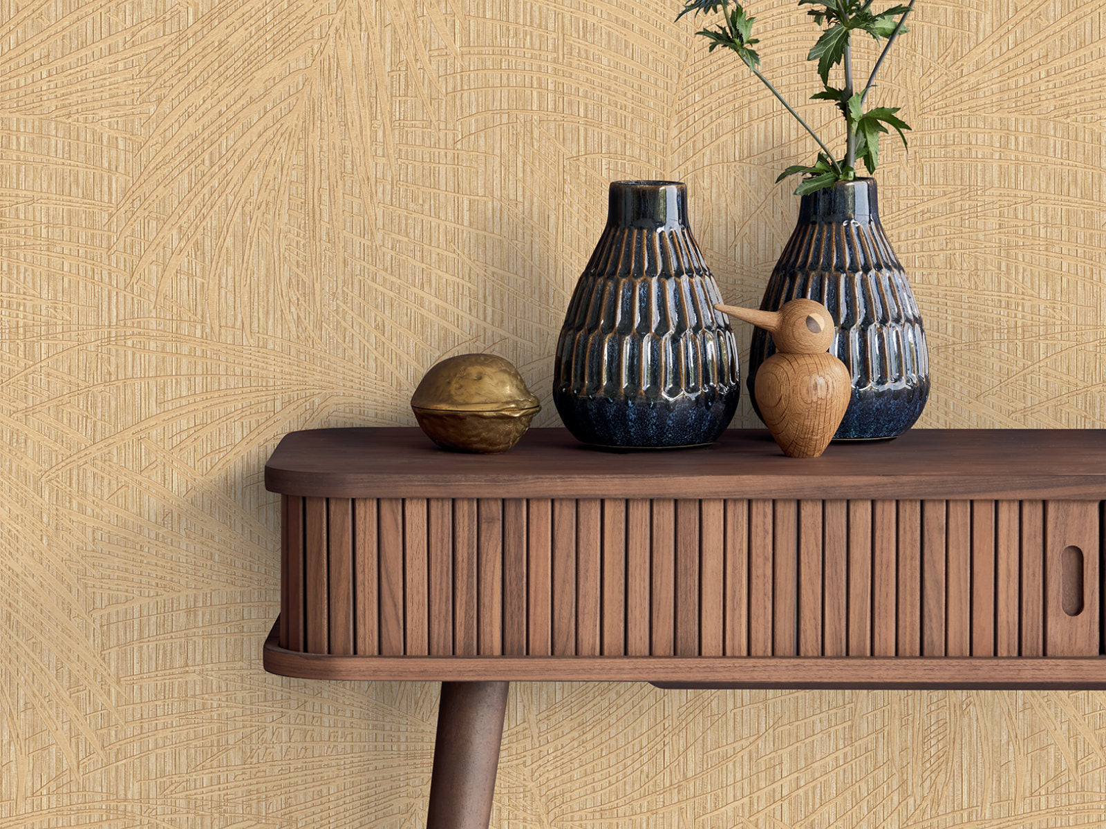 Gemaakt van hooge kwaliteit vinyl op vlies, is dit behang niet alleen stijlvol maar ook praktisch in gebruik. Dankzij de rechte aanzet en het royale formaat van 100 cm breed en 10 meter lang, breng je het eenvoudig en strak aan. Perfect voor wie een tropische twist zoekt met een warme, natuurlijke basis.