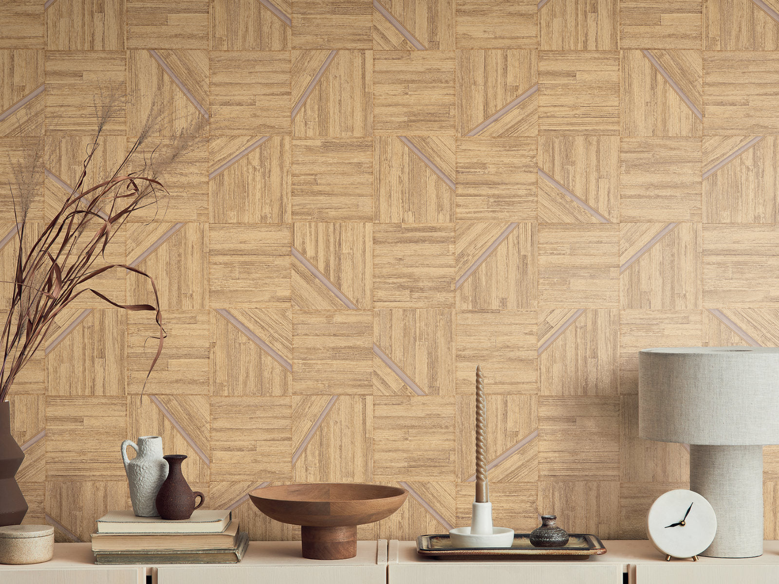 Laat je muur tot leven komen met dit geometrische behang uit de Anam collectie van Eijffinger. Het speelse patroon van houtstructuren in blokken die elk een andere richting op wijzen, zorgt voor een verrassend 3D-effect en een moderne twist op natuurlijke materialen. Verkrijgbaar in zes stijlvolle kleuren, perfect om jouw interieur een eigentijdse en warme uitstraling te geven.