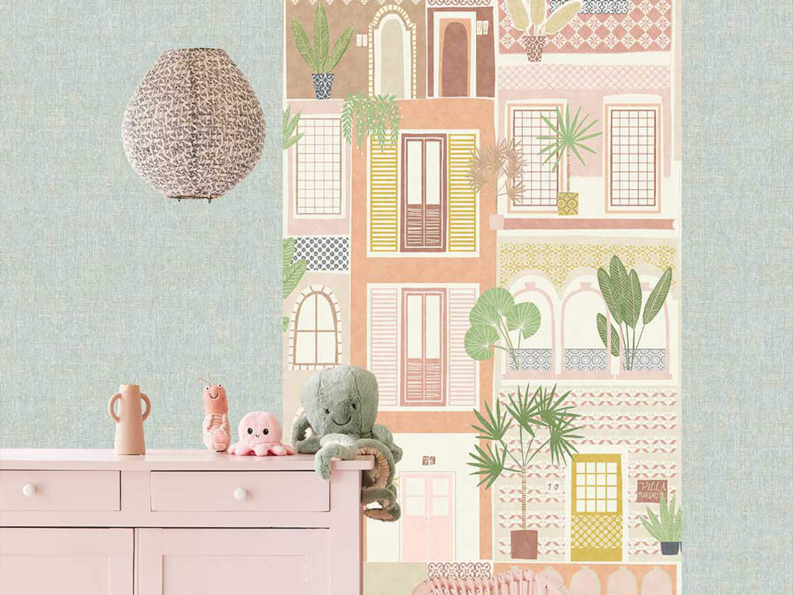 De Explore - 323104 van Eijffinger behang is een paneel (Wallpower) met een dessin van verschillende vrolijke deuren en ramen. Wie zou er achter wonen? Dit paneel is gedrukt op een vlies en leverbaar in verschillende kleuren. Dit paneel wordt geleverd met een hoogte van 280 cm x 106 cm breed.
