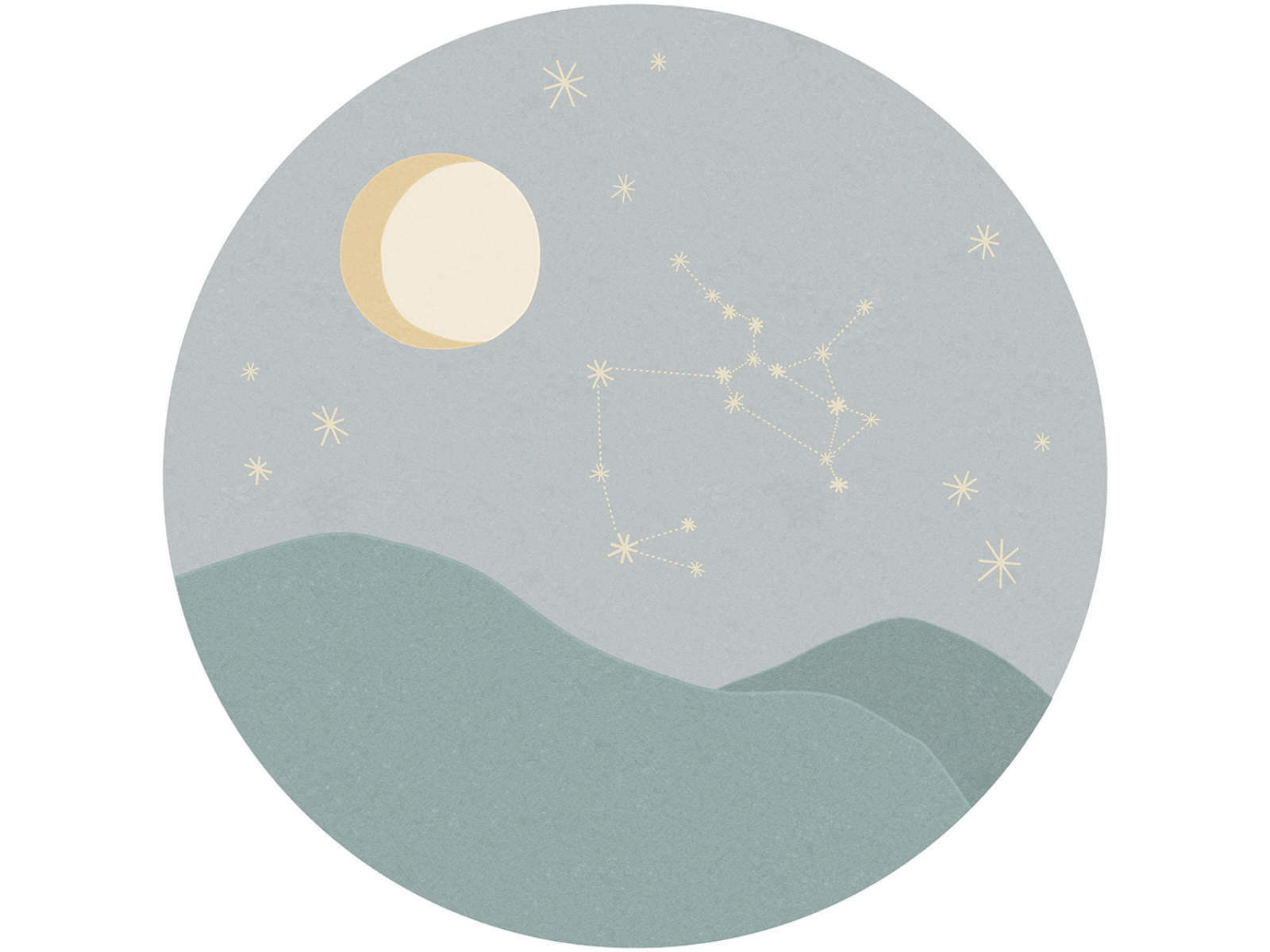 De Explore - 323145 van Eijffinger behang is een cirkel paneel (Wallpower) met een dessin van verschillende sterrenbeelden. Dit cirkel paneel is gedrukt op een vlies en leverbaar in verschillende kleuren. Dit paneel wordt geleverd met een hoogte van 115 cm x 115 cm breed.