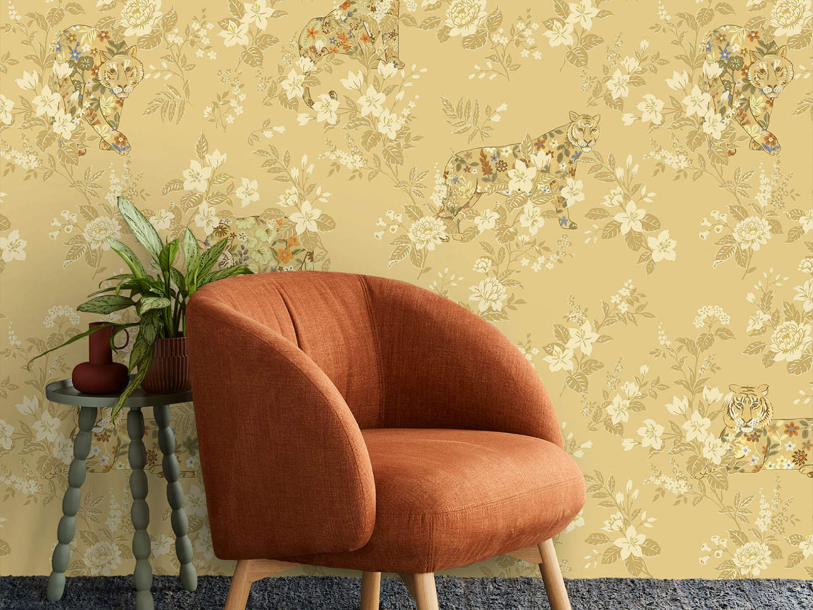 De Festival - 333550 van Eijffinger is ontworpen om niet alleen je muren te decoreren, maar ook om emoties op te roepen. Laat je betoveren door de charme van kleurrijk gebloemde katachtigen en omring jezelf met positieve vibes.