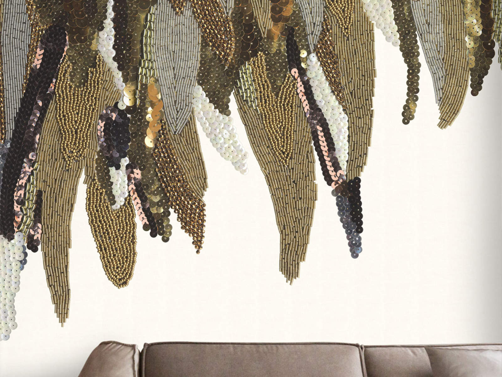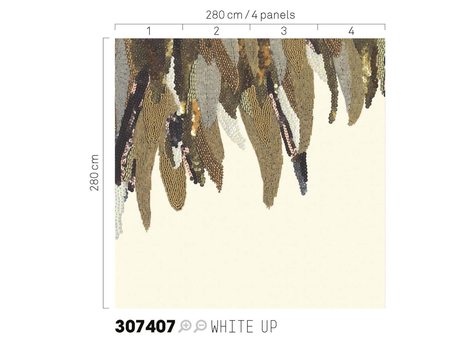 De Museum - 307407 van Eijffinger behang is een paneel (Wallpower) met kraaltjes en pailletten die van de muur spatten. Dit paneel is gedrukt op een vliesbehang. Dit paneel wordt geleverd met een hoogte van 280 cm x 280 cm breed en kan worden gecombineerd met de 307409 van Eijffinger.
