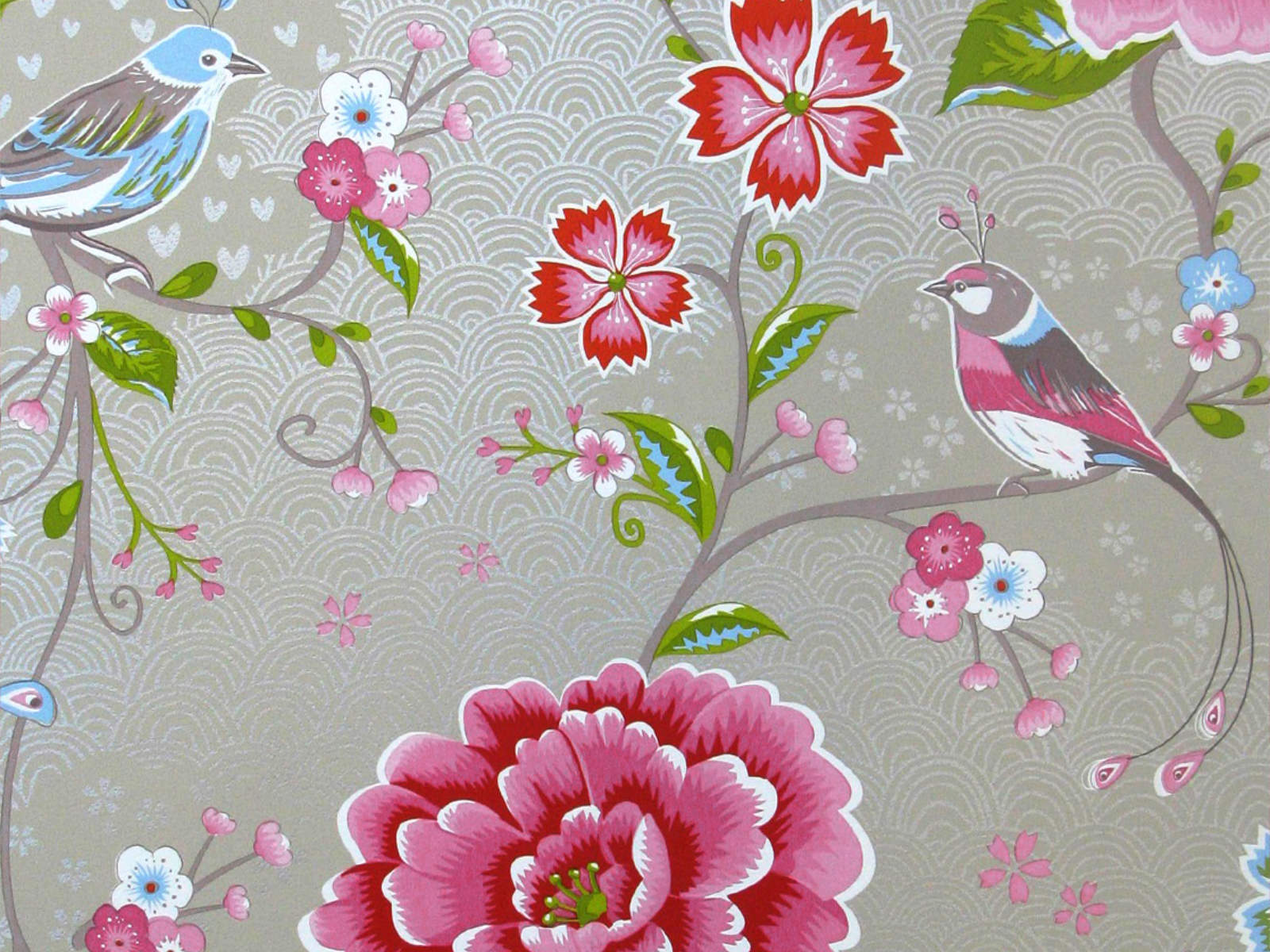 De Pip Studio 5 Birds in Paradise - 300163 van Eijffinger behang is een klassieker met een hemels dessin van vogels, vogelkooien en rijke bloemen gedrukt op een vliesbehang.