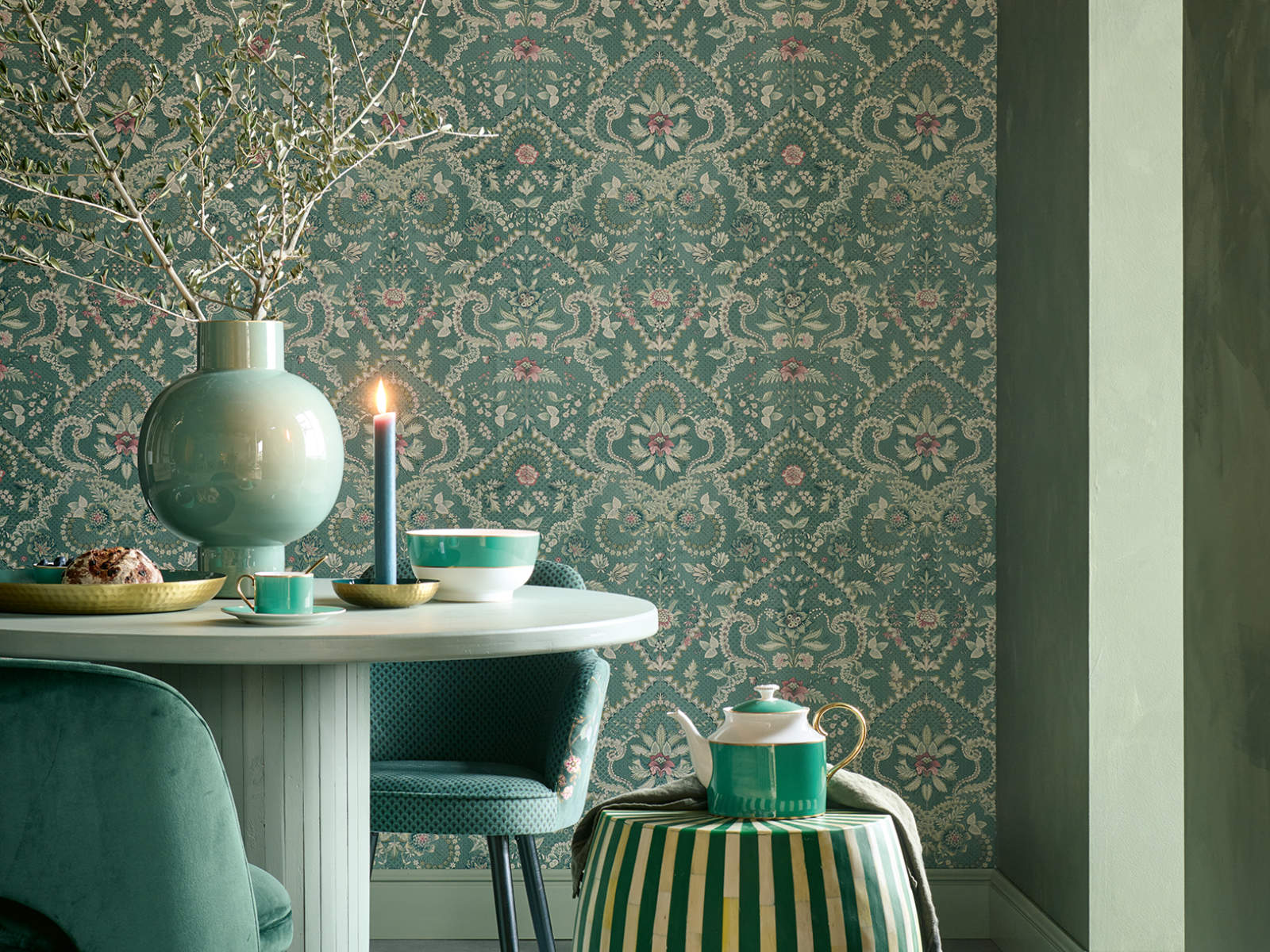 De Pip Studio 6 - 333152 van Eijffinger behang is een prachtig botanisch patroon van verschillende ornamenten gedrukt op een vliesbehang.