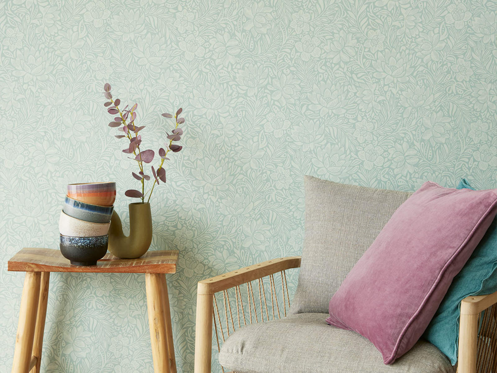 De Posy - 316026 van Eijffinger behang is een sierlijke all-over bloemenprint op een vliesbehang.