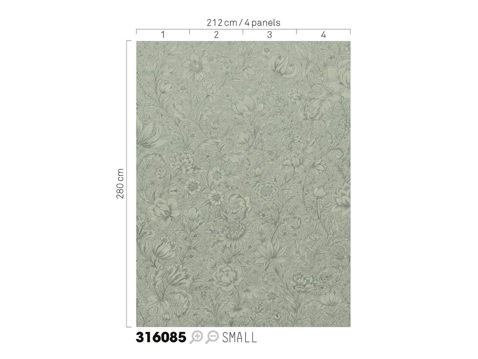 De Posy - 316085 van Eijffinger behang is een paneel (Wallpower) met een dessin van in potlood geschetste bloemen in crème of saliegroen. Dit paneel wordt geleverd met een hoogte van 280 cm x 212 cm breed.