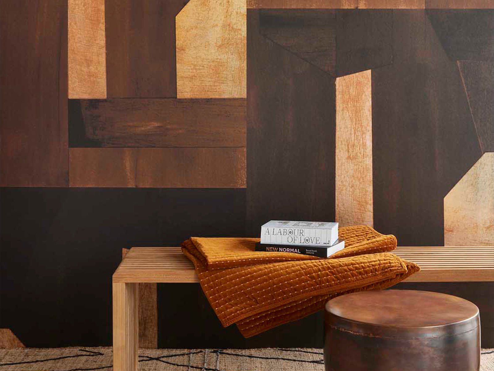 De Revive - 333677 van Eijffinger is een expressieve keuze voor jouw interieur. Het wandgrote ontwerp geeft je muur karakter en transformeert de ruimte tot een visueel meesterwerk. Het stoere en verweerde ontwerp met metallic blokken op een matte achtergrond brengt een unieke textuur in je interieur. De krachtige vlakverdeling voegt een eigentijdse flair toe.