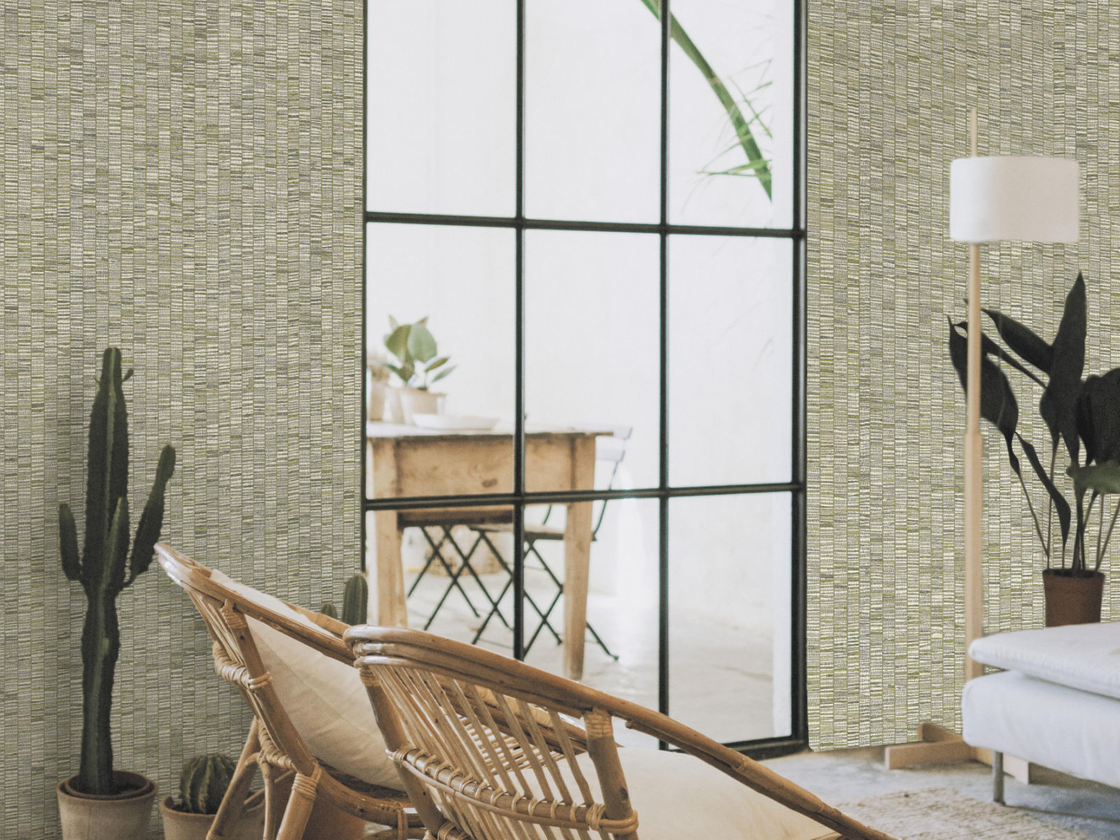 De Lemuria Unito Ribbon Grass - 60653 van HookedOnWalls is neemt je mee op reis door de jungle. Met deze waanzinnige uni creëer je een tropische sfeer in jouw interieur. Deze uni laat zich perfect combineren met één van de verschillende dieren- en plantenprints uit de Lemuria collectie.
