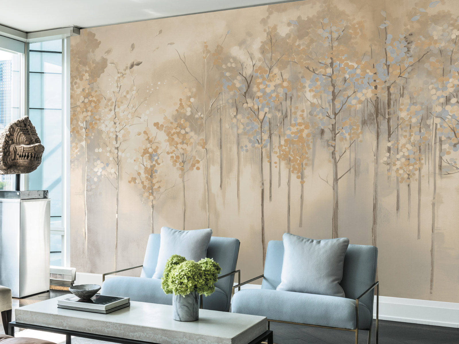 Breng een vleugje poëzie aan op je muur met de Promenade Park mural van HookedOnWalls. Dit panoramabehang toont een schilderachtig boslandschap in zachte, vervagende tinten, met een subtiele mist die een dromerige, bijna herfstachtige sfeer oproept. Alsof je uitkijkt over een rustig park in de vroege ochtend – sereen, elegant en tijdloos.