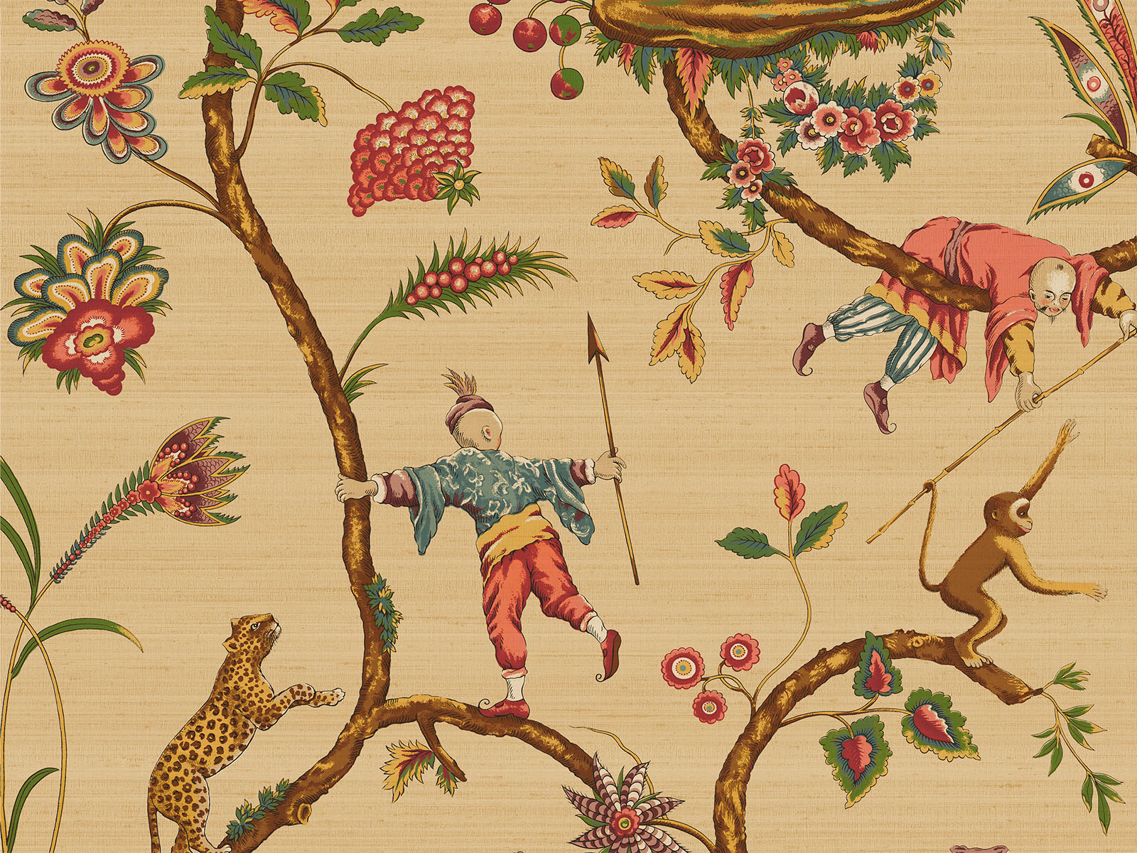 Beleef een stukje kunstgeschiedenis aan je muur met Chinoise Exotique, een groots en gedetailleerd behang uit de prestigieuze Scalamandré collectie van HookedOnWalls. Gebaseerd op een 18e-eeuws Frans ontwerp, toont dit indrukwekkende dessin scènes van Chinese figuren tussen tropische planten en exotische dieren zoals tijgers, leeuwen, cheeta’s en apen. Een klassieke chinoiserie die ooit zó populair was, dat Frankrijk zelfs de verkoop probeerde te beperken om de binnenlandse textielmarkt te beschermen.