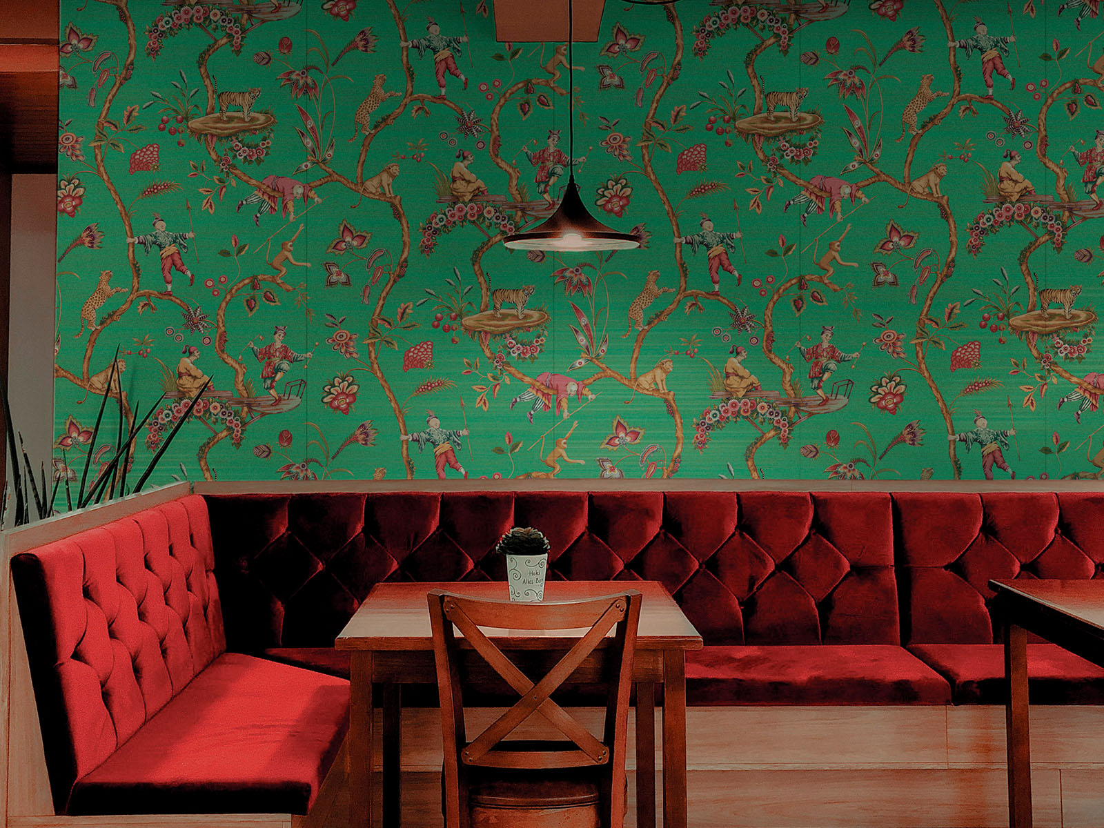 Beleef een stukje kunstgeschiedenis aan je muur met Chinoise Exotique, een groots en gedetailleerd behang uit de prestigieuze Scalamandré collectie van HookedOnWalls. Gebaseerd op een 18e-eeuws Frans ontwerp, toont dit indrukwekkende dessin scènes van Chinese figuren tussen tropische planten en exotische dieren zoals tijgers, leeuwen, cheeta’s en apen. Een klassieke chinoiserie die ooit zó populair was, dat Frankrijk zelfs de verkoop probeerde te beperken om de binnenlandse textielmarkt te beschermen.