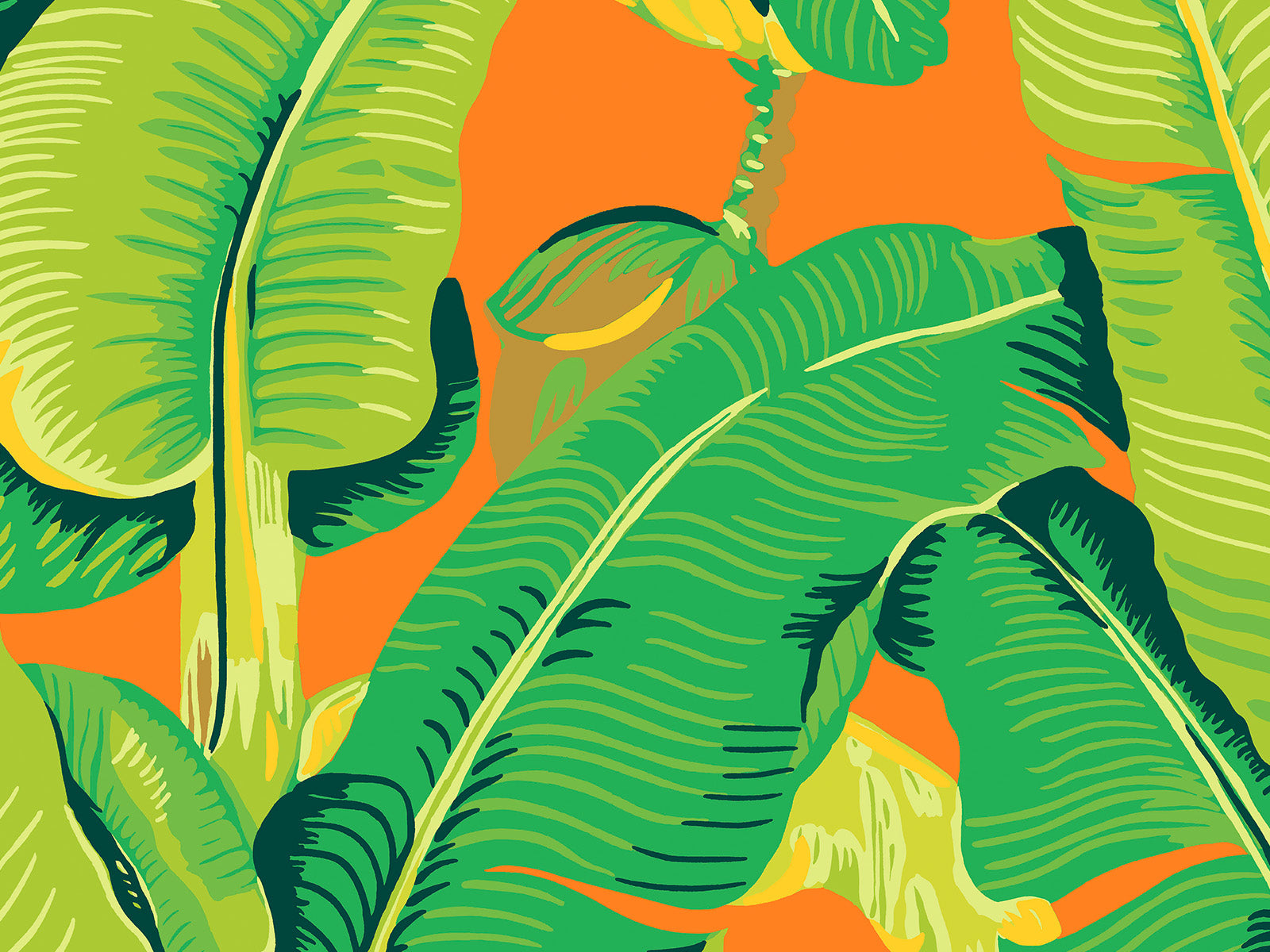 Hindson Palm brengt instant tropische flair in je interieur met zijn krachtige bladerpatroon en rijke kleurenpalet. Dit iconische behang uit de Scalamandré collectie van HookedOnWalls toont grote, expressieve bananenbladeren die een levendige, bijna weelderige sfeer oproepen. Het ontwerp is energiek en dominant, perfect voor wie een tropisch statement durft te maken in bijvoorbeeld de hal, eetkamer of woonkamer.