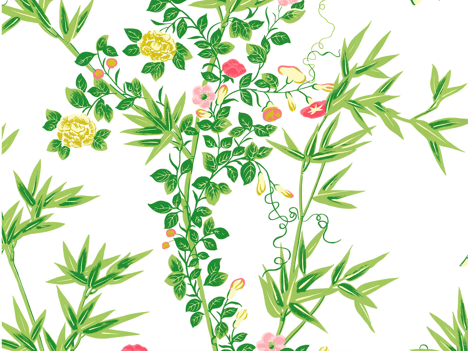 Breng de romantiek van het 19e-eeuwse textieldesign tot leven met Jardin De Chine, een botanisch behang uit de iconische Scalamandré collectie van HookedOnWalls. Strengen van bloemen en vlinders kronkelen speels over het oppervlak in een stijl die doet denken aan verfijnde illustraties: levendig, kunstzinnig en een tikkeltje abstract. De rijke kleurencombinaties – van klassiek wit met groen tot diepblauw en beige – geven elke ruimte een uniek karakter.