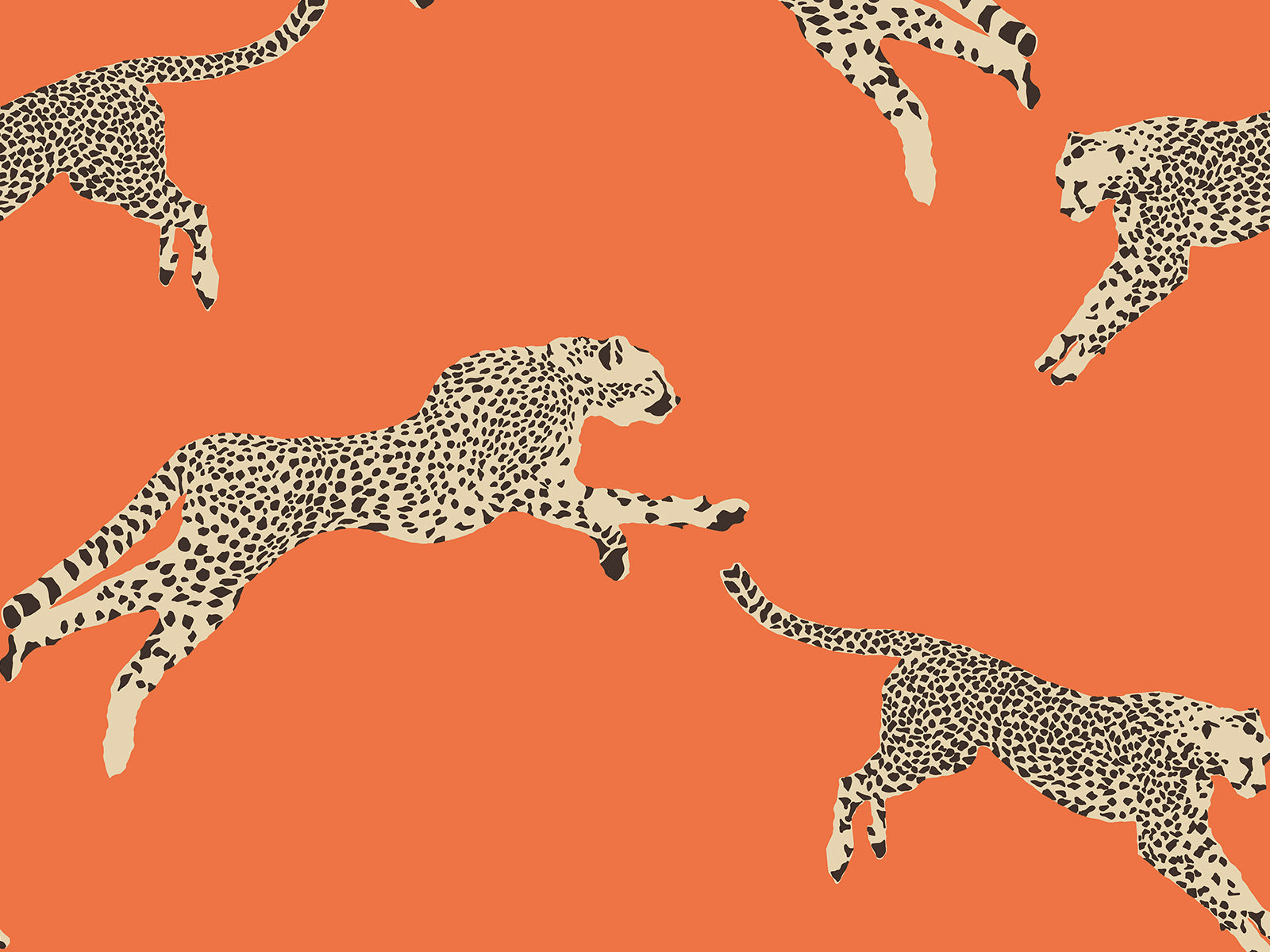 Met acht kleurvarianten – van levendige, felle tonen tot zachte roze en beige tinten – past Leaping Cheetah in uiteenlopende interieurs. Dankzij de rechte aanzet, een breedte van 87 cm en een patroonhoogte van 81 cm creëer je eenvoudig een krachtig visueel ritme op de wand. Voor wie houdt van iconisch design met een exotische twist.