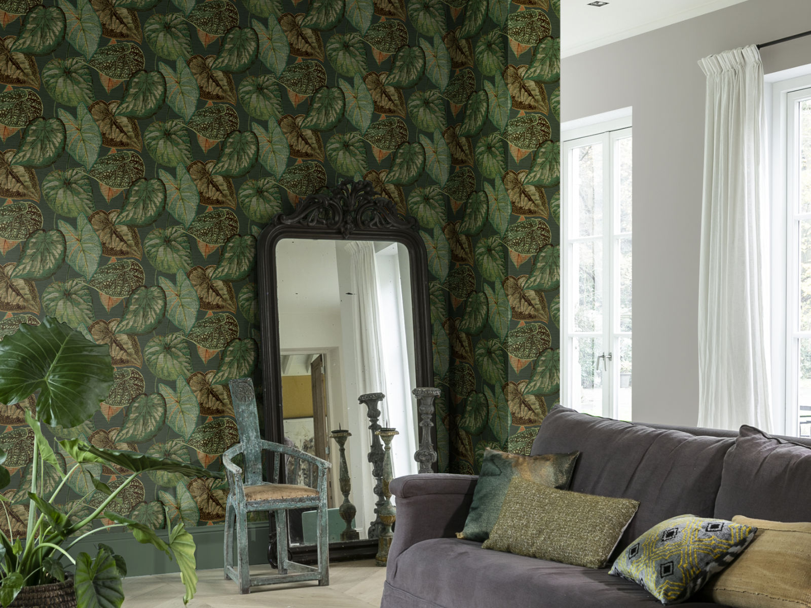 De Tahiti Tropical Leaves - TA25054 van HookedOnWalls is een prachtig botanisch dessin op een vliesbehang. Dit behang is gemakkelijk aan brengen door de muur in te lijmen. Leverbaar in verschillende kleuren.