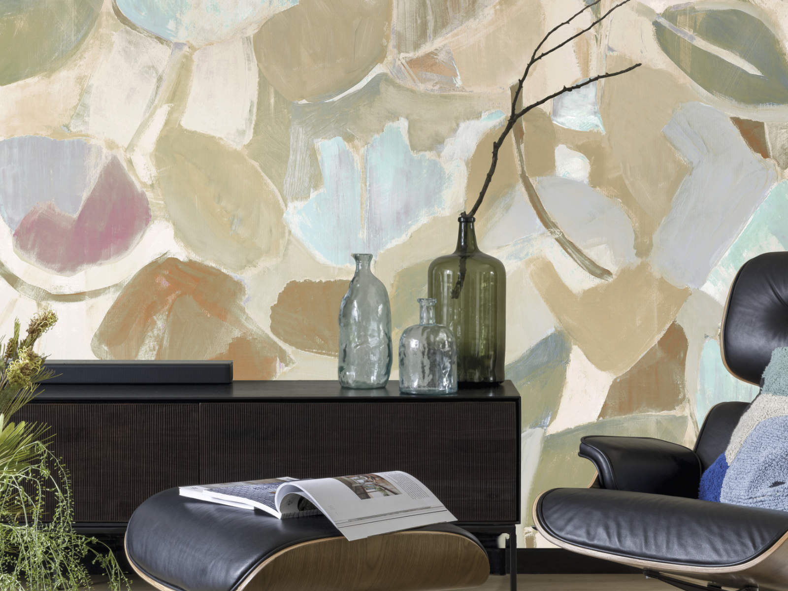 Ontdek de betoverende wereld van het HookedOnWalls Umami Mantua - 30280 behang, waar kunst en design samenkomen in een adembenemend multicolor palet. Dit abstracte en geometrische patroon transformeert elke ruimte in een visueel spektakel, perfect voor wie op zoek is naar een unieke en moderne uitstraling. Met een indrukwekkende breedte van 408 cm en een panoramische lengte van 3,00 m, biedt dit vinylbehang op vlies een naadloze en luxueuze afwerking die jouw muren tot leven brengt. De vrije aanzet van het patroon zorgt ervoor dat je creatief kunt zijn met de plaatsing, zonder je zorgen te maken over patroonherhaling.