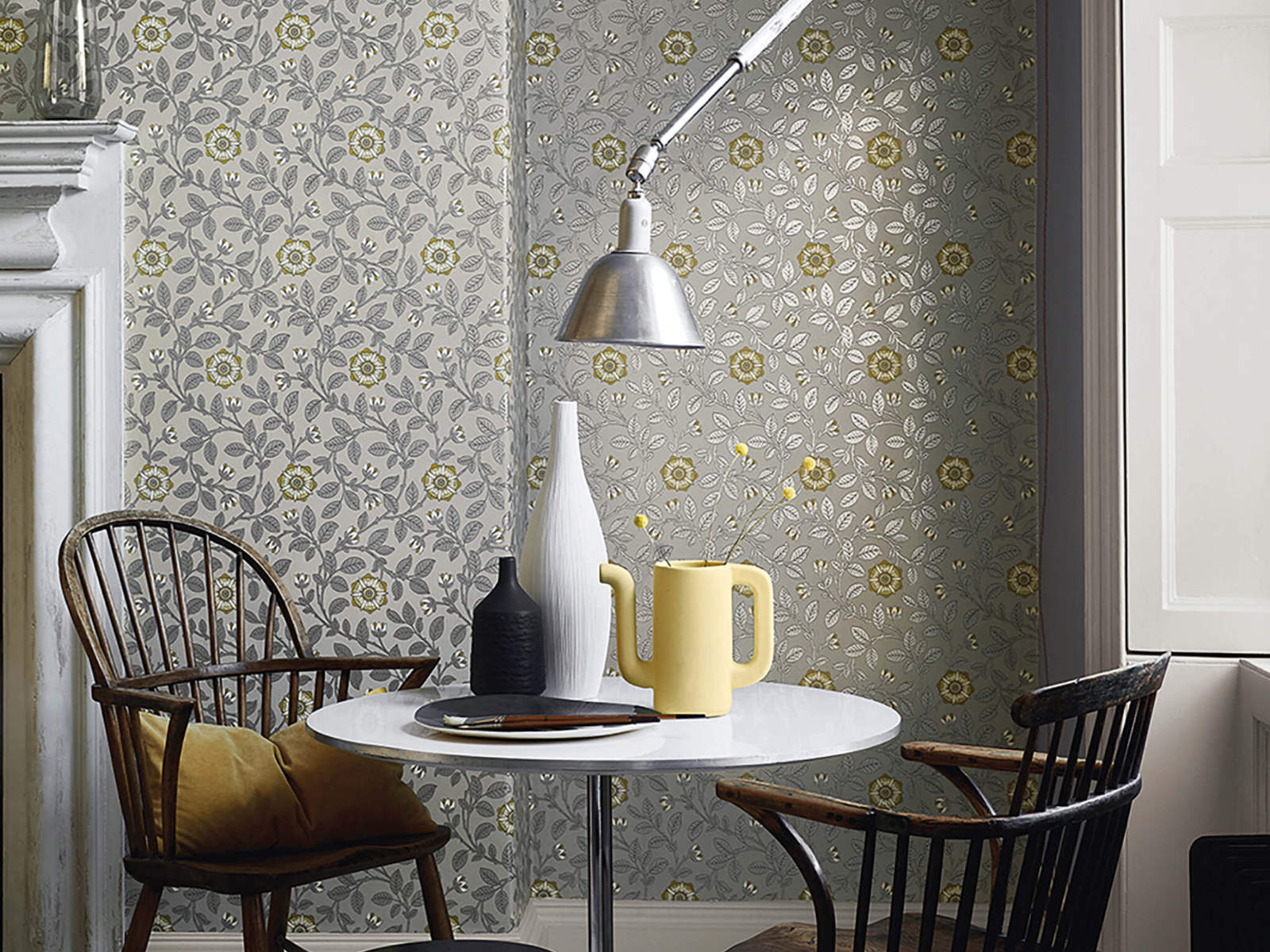 Met een verfijnd ontwerp dat doet denken aan de William Morris stijl, domineert de tere Tudor-roos dit behang. Little Greene heeft deze historische schat nieuw leven ingeblazen met authentieke Arts & Crafts kleuren, klassieke tinten en een eigentijdse metallic nuance.