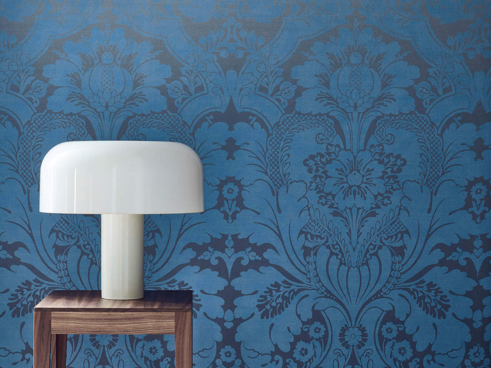 De London Wallpapers V St James Park - Cobalt Fade  van Little Greene geeft je ruimte een koninklijke touch. Dit grootse damastpatroon, ooit de thuisbasis van de hertogin van Marlborough, ademt een tijdloze elegantie die jouw interieur naar nieuwe hoogten tilt. Ontworpen door niemand minder dan Christopher Wren, straalt dit behang klasse uit. De vriendin en vertrouwelinge van Queen Anne, de hertogin van Marlborough, koos voor dit betoverende donkerblauwe gevlokte ontwerp op een lichtblauwe achtergrond. Hoewel het oorspronkelijke ontwerp Victoriaans is, voegt deze interpretatie een moderne twist toe met een licht-naar-donker ombré-effect.