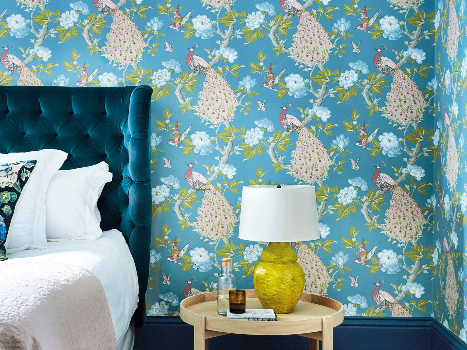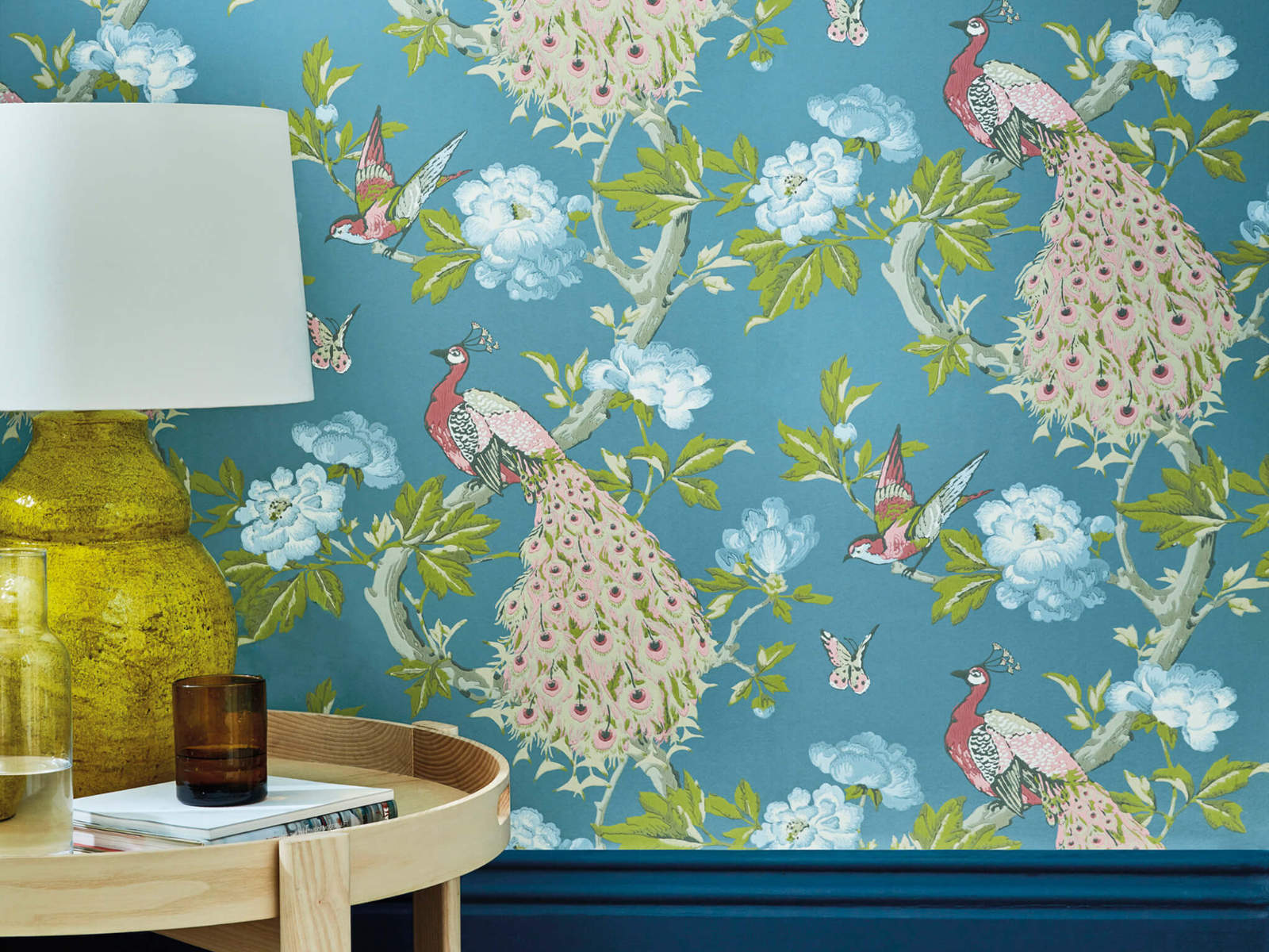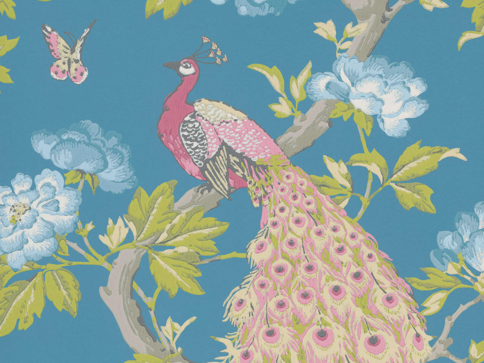 De National Trust Papers Pavona - Sylvie van Little Greene is een prachtig voorbeeld van 19e-eeuwse behangkunst. Dit flamboyante ontwerp, ontdekt in de lobby van het historische landhuis Erddig in Wales, brengt de pracht van de jaren 1870 naar jouw interieur. Met een schilderkunstige afwerking die doet denken aan traditionele Chinese zijde, straalt dit behang een tijdloze elegantie uit. De voorstelling van pauwen op takken, omringd door bloemen, bladeren en vogels, weerspiegelt het typische thema van behangen en stoffen uit die tijd. Een charmant eerbetoon aan de fascinatie van de Westerse elite voor Chinese ontwerpen.