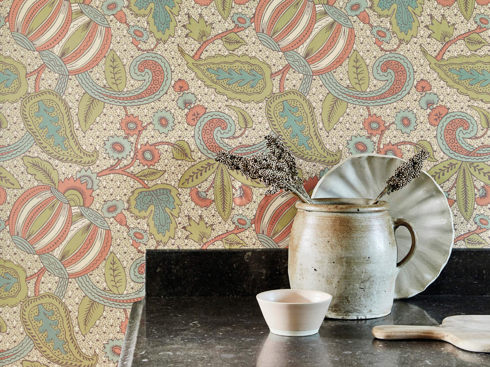 Little Greene Behang National Trust Papers Pomegranate - Bazaar
